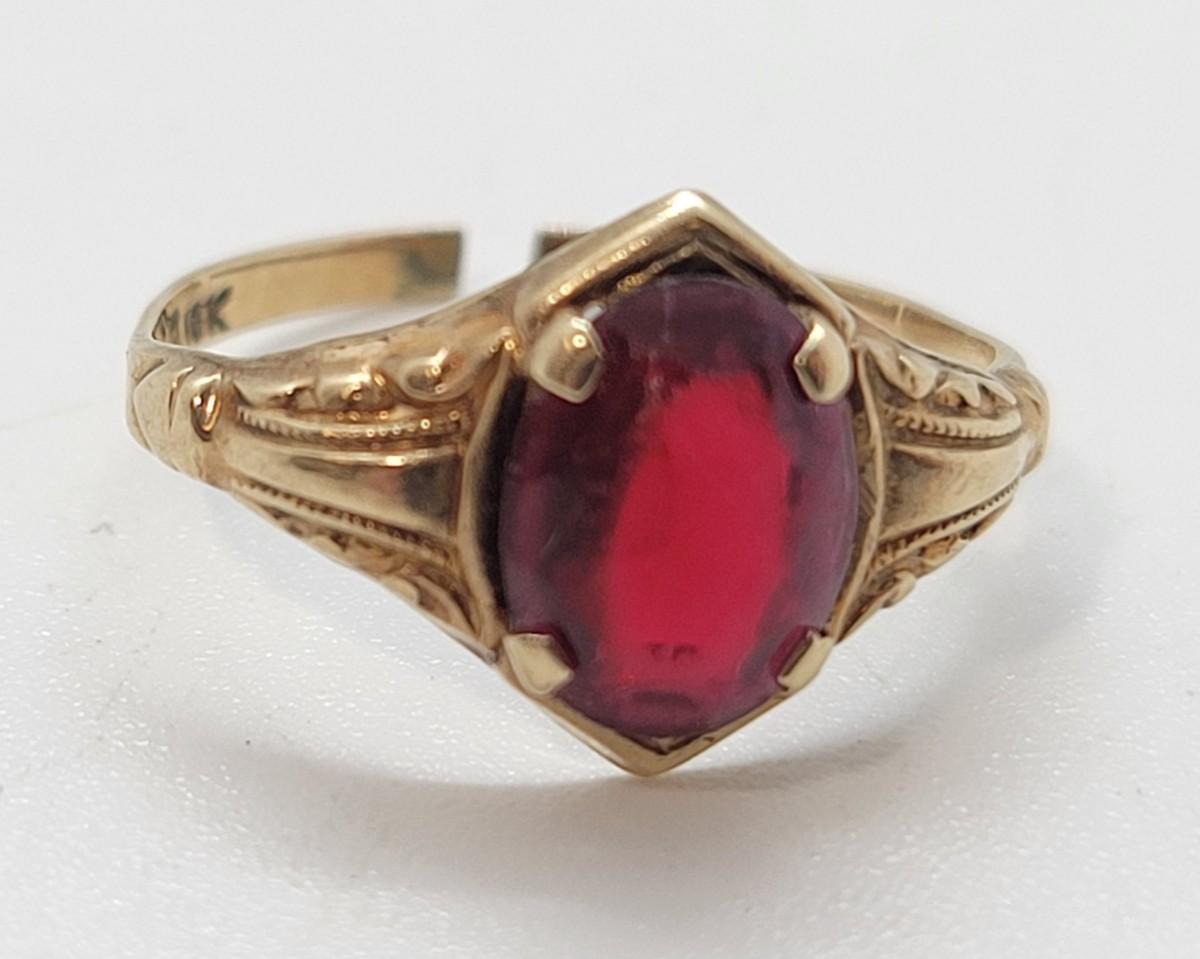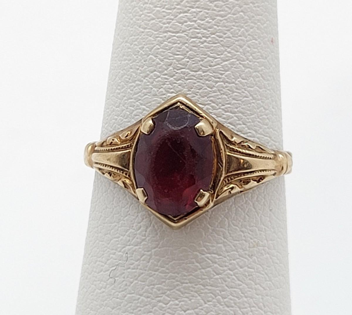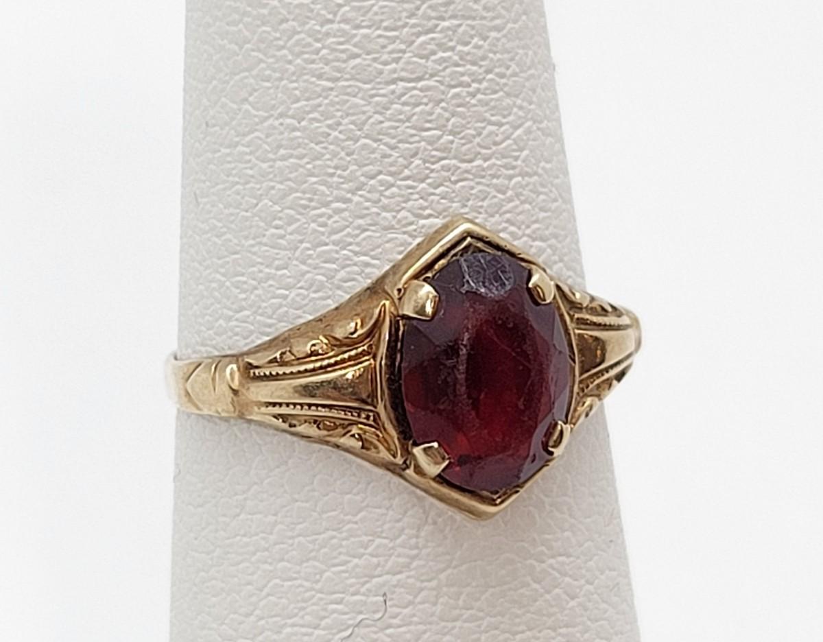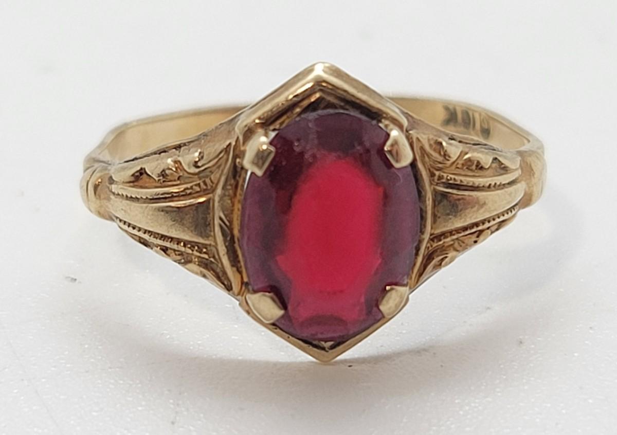 LOT 134: 10K Gold Vintage Ruby Ring - Size 5 - .91 gtw