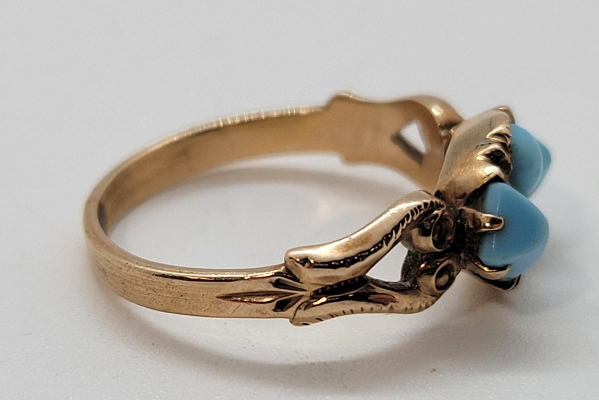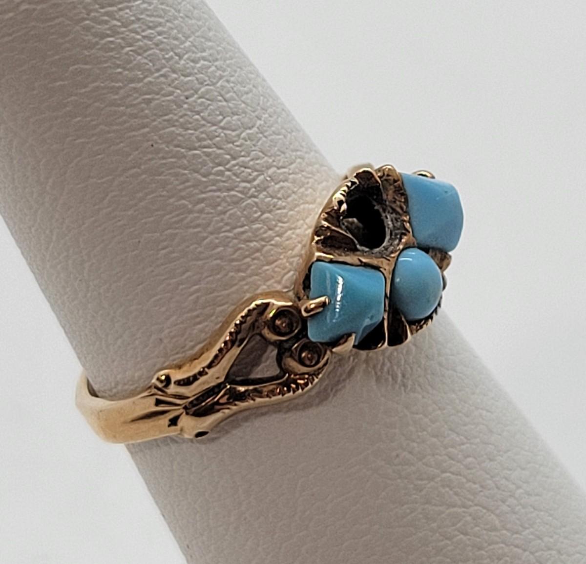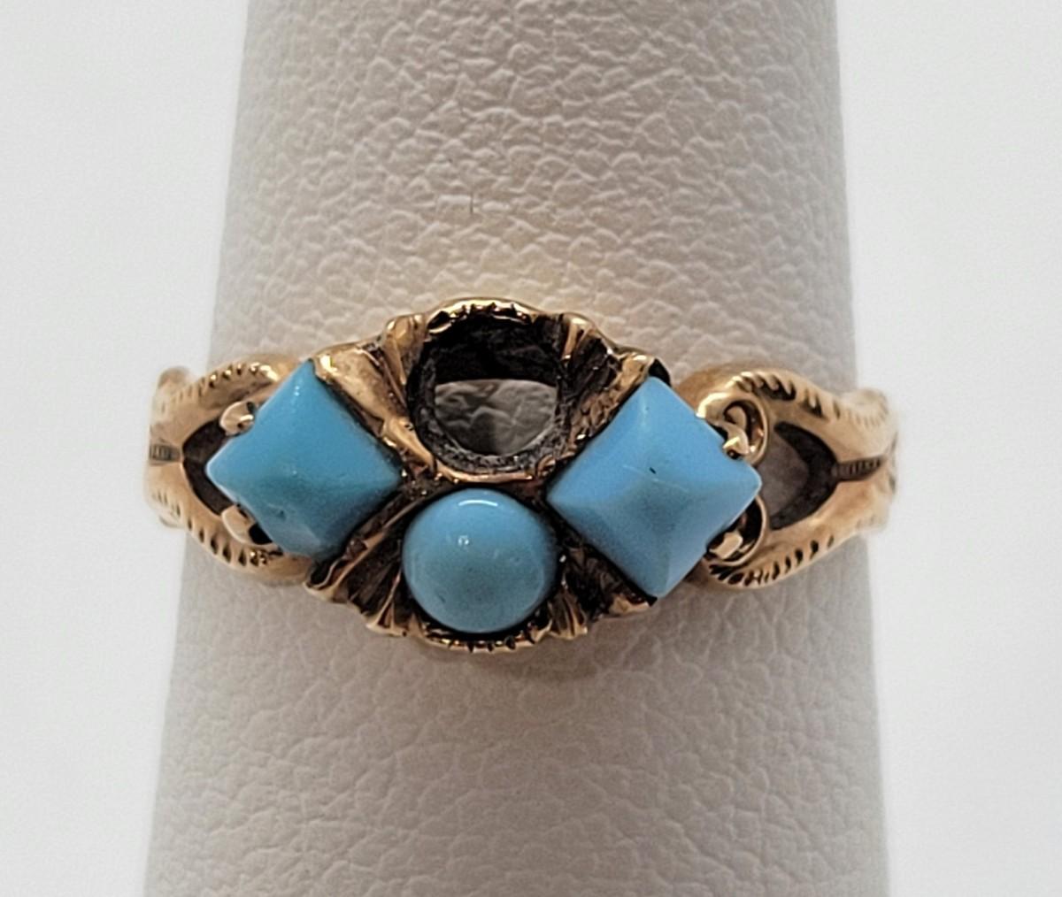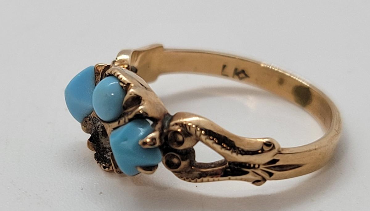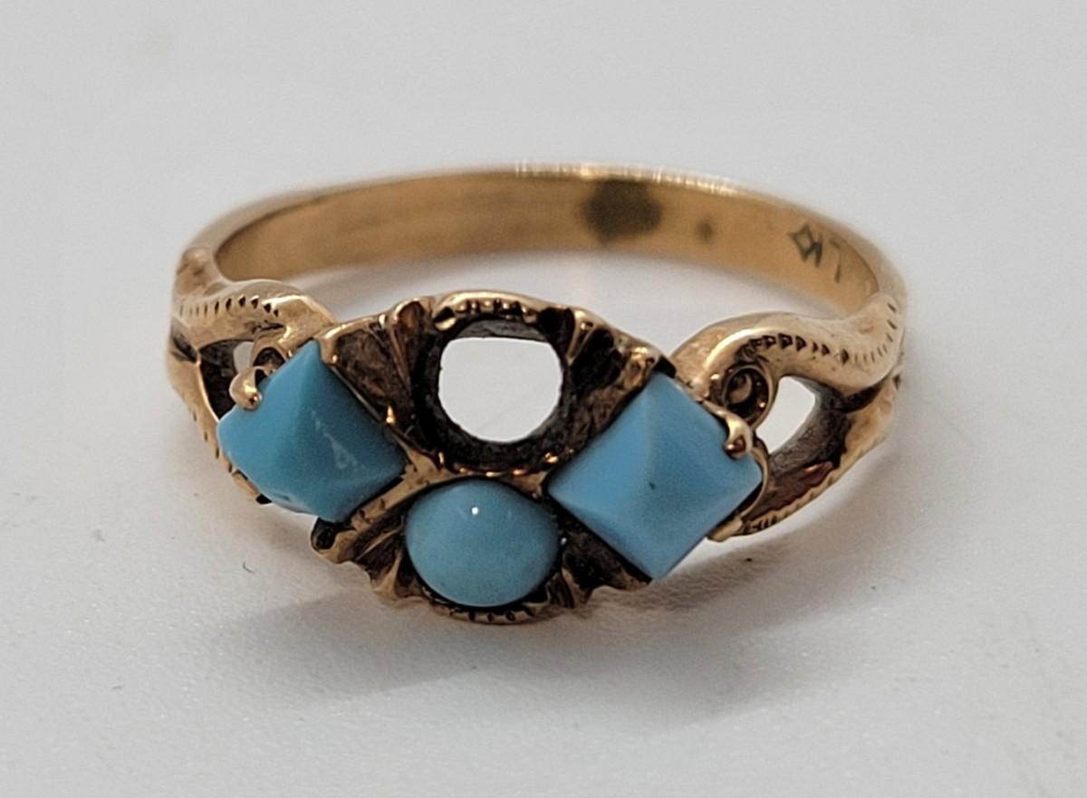 LOT 145: 10K Gold Vintage Turquoise Ring - Size 4.5 - 1.83 gtw