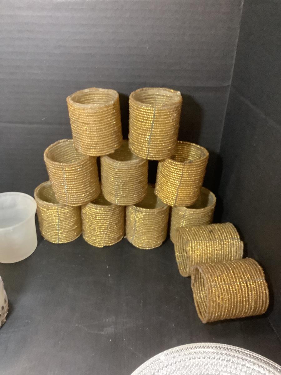 11 - Gold Beaded Votives, measures 2.5” High x 2.25” Round