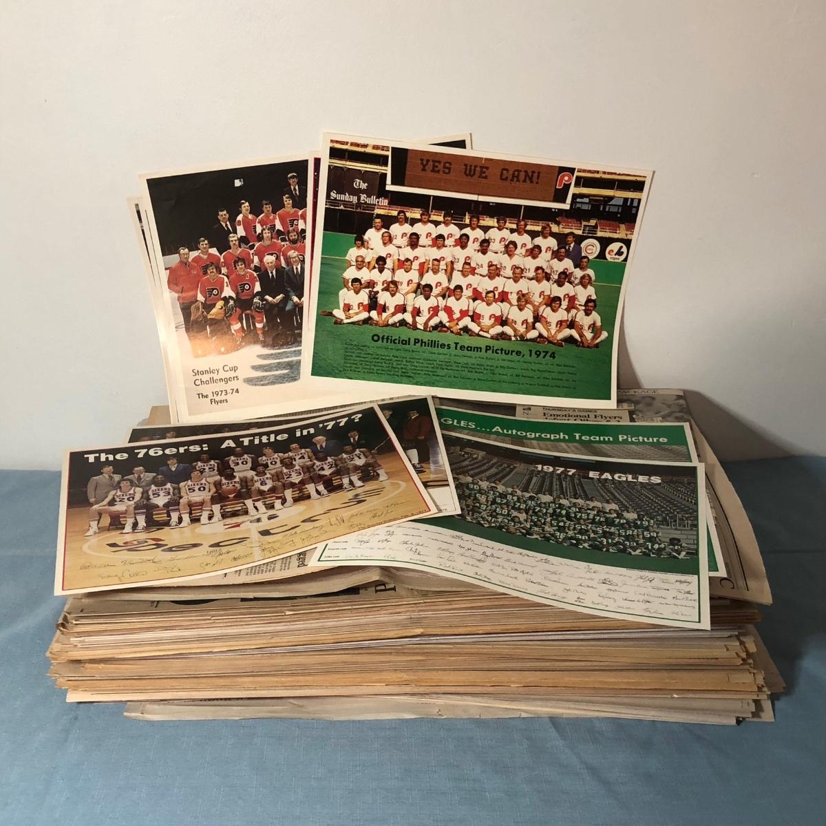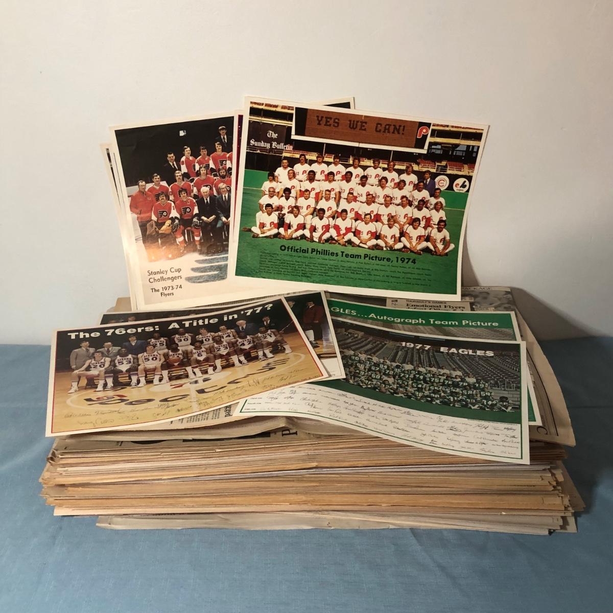 LOT 43M: Professional Sports Team Photos & 4" Stack of Newspapers