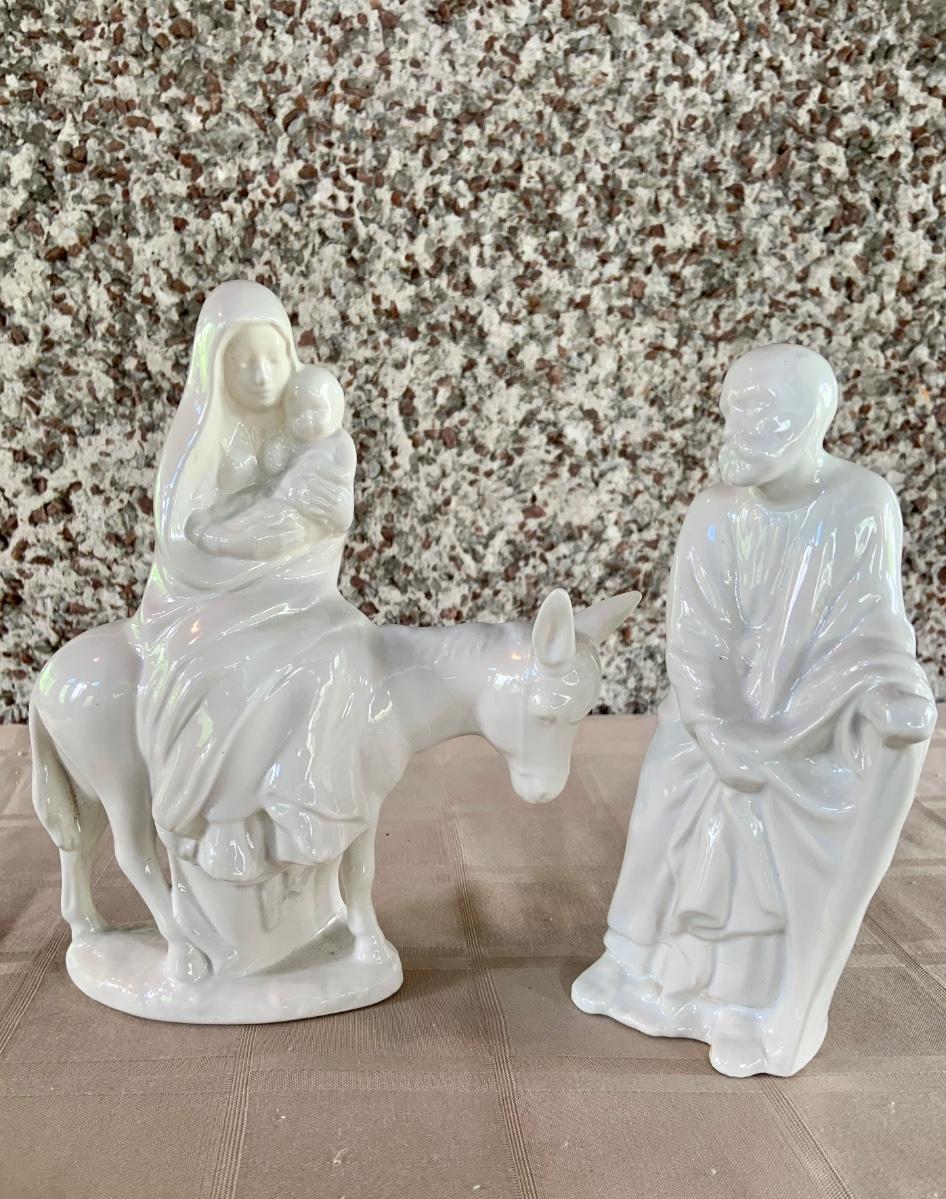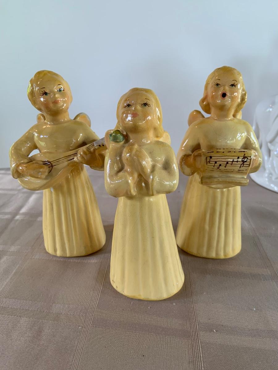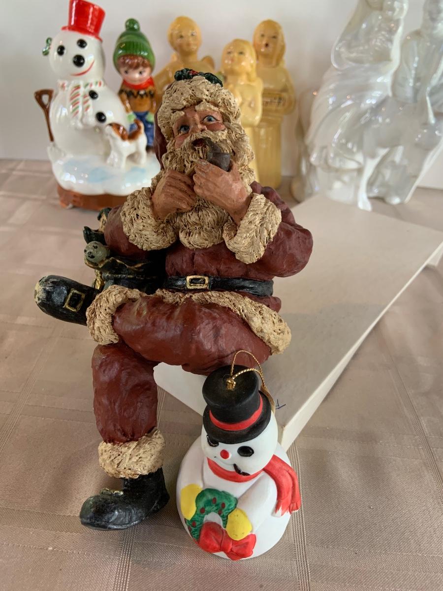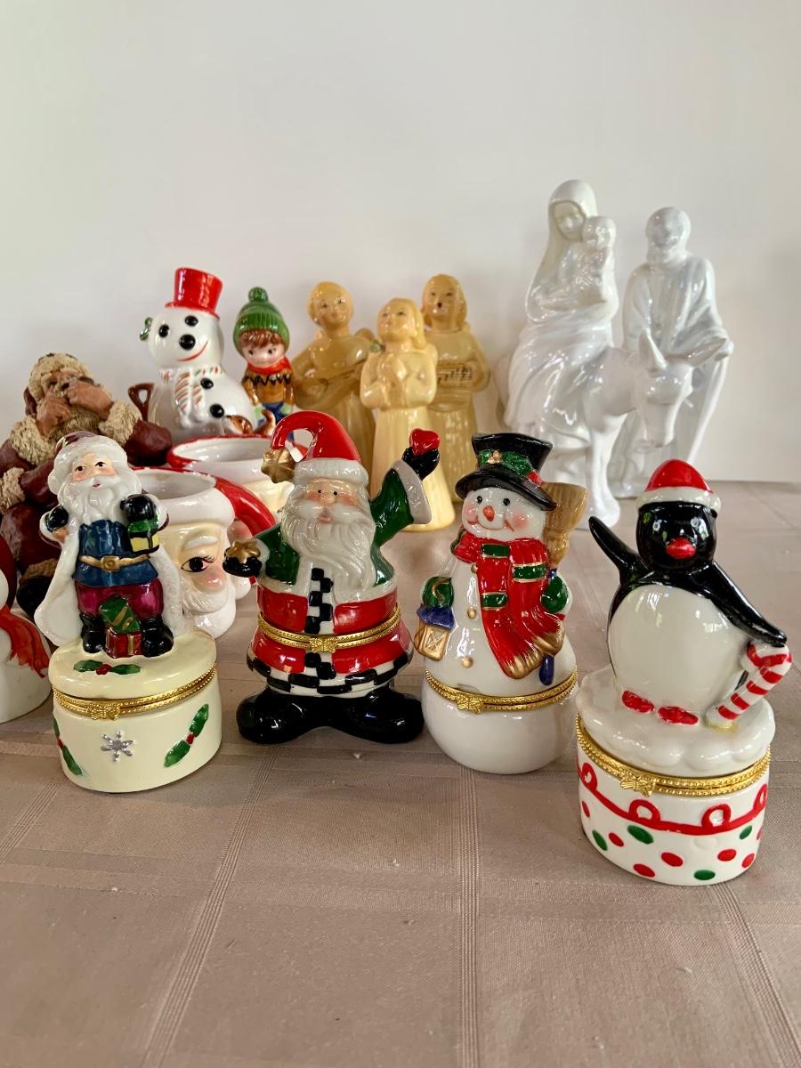 LOT:56G: Vintage Christmas: Nativity Set & Figures, Santa Mugs, Angels, Snowmen, Bells and More.