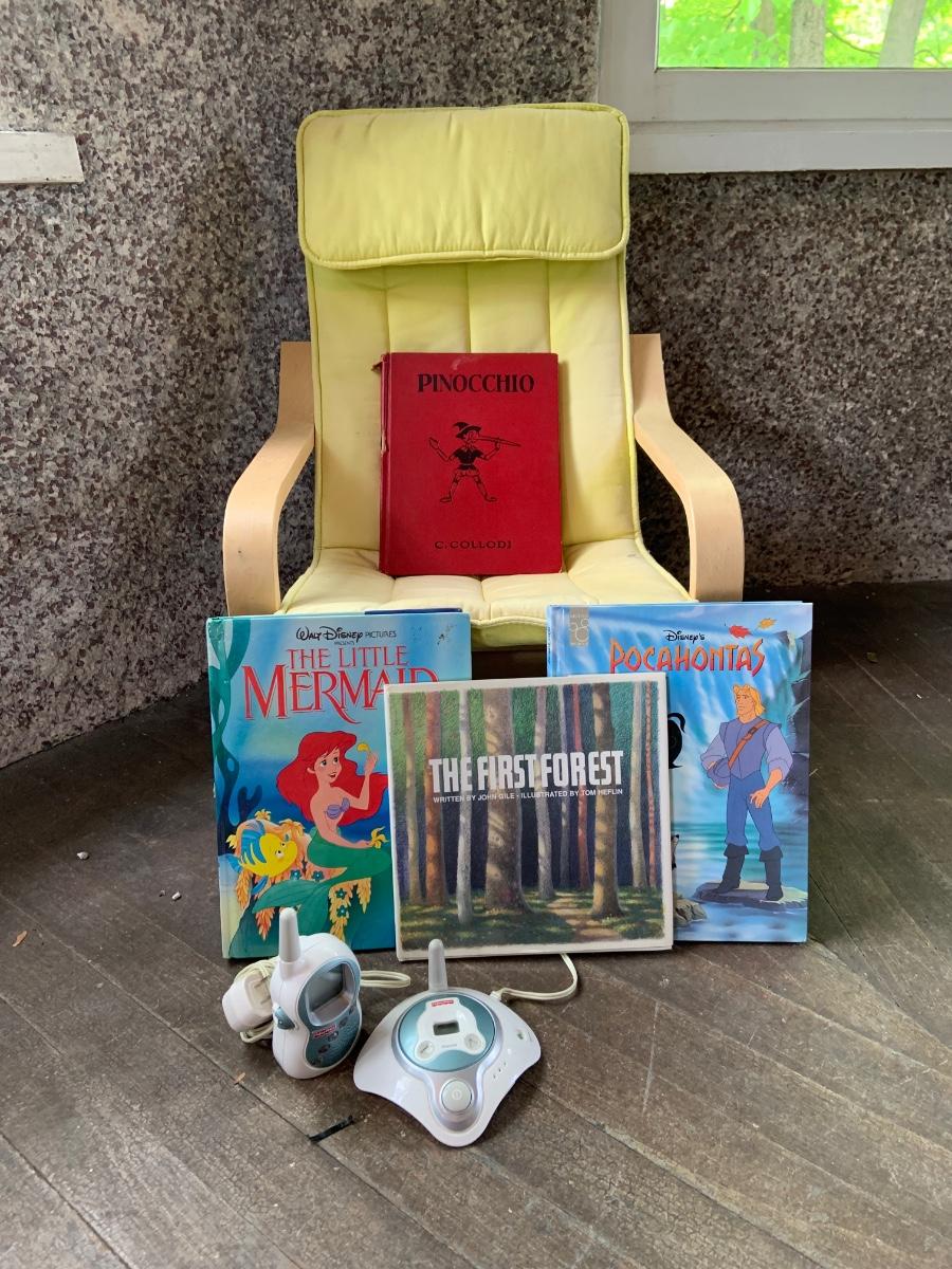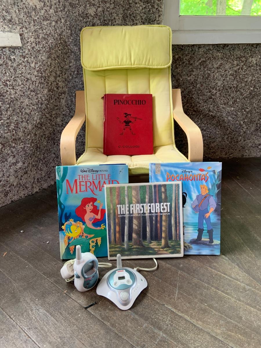 LOT:57: Child Size  Ikea Poang Chair, 3 Childrens Books and a Working Fisher Price Baby Monitor