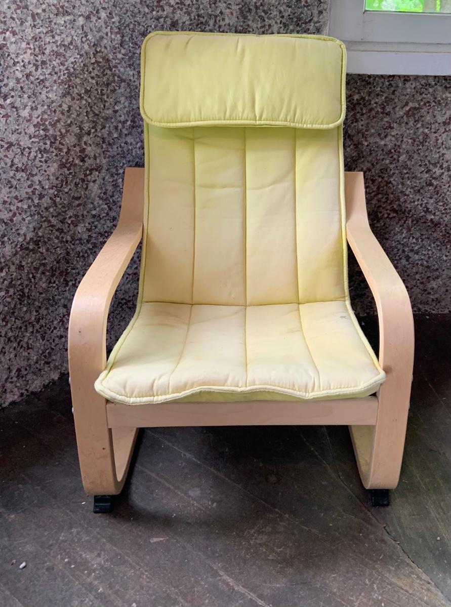LOT:57: Child Size Ikea Poang Chair, 3 Childrens Books and a Working Fisher Price Baby Monitor