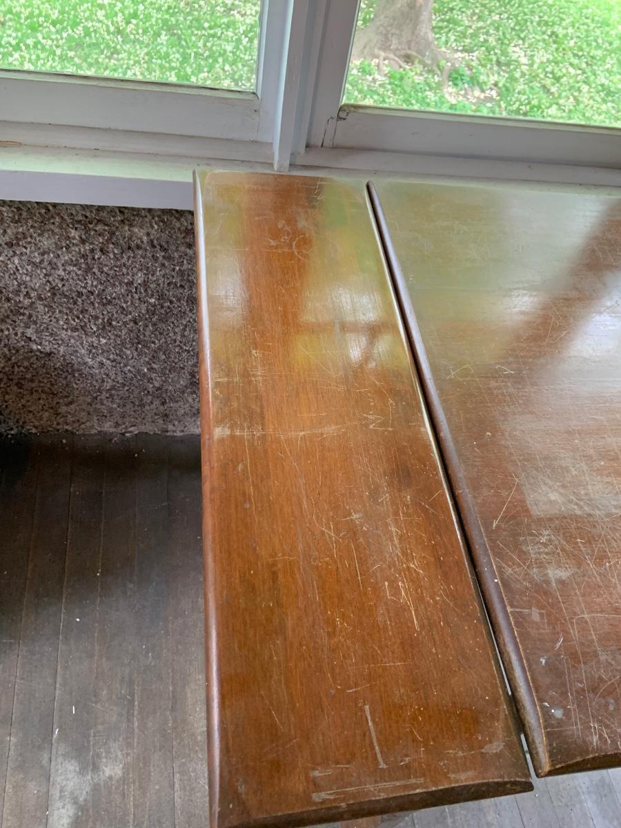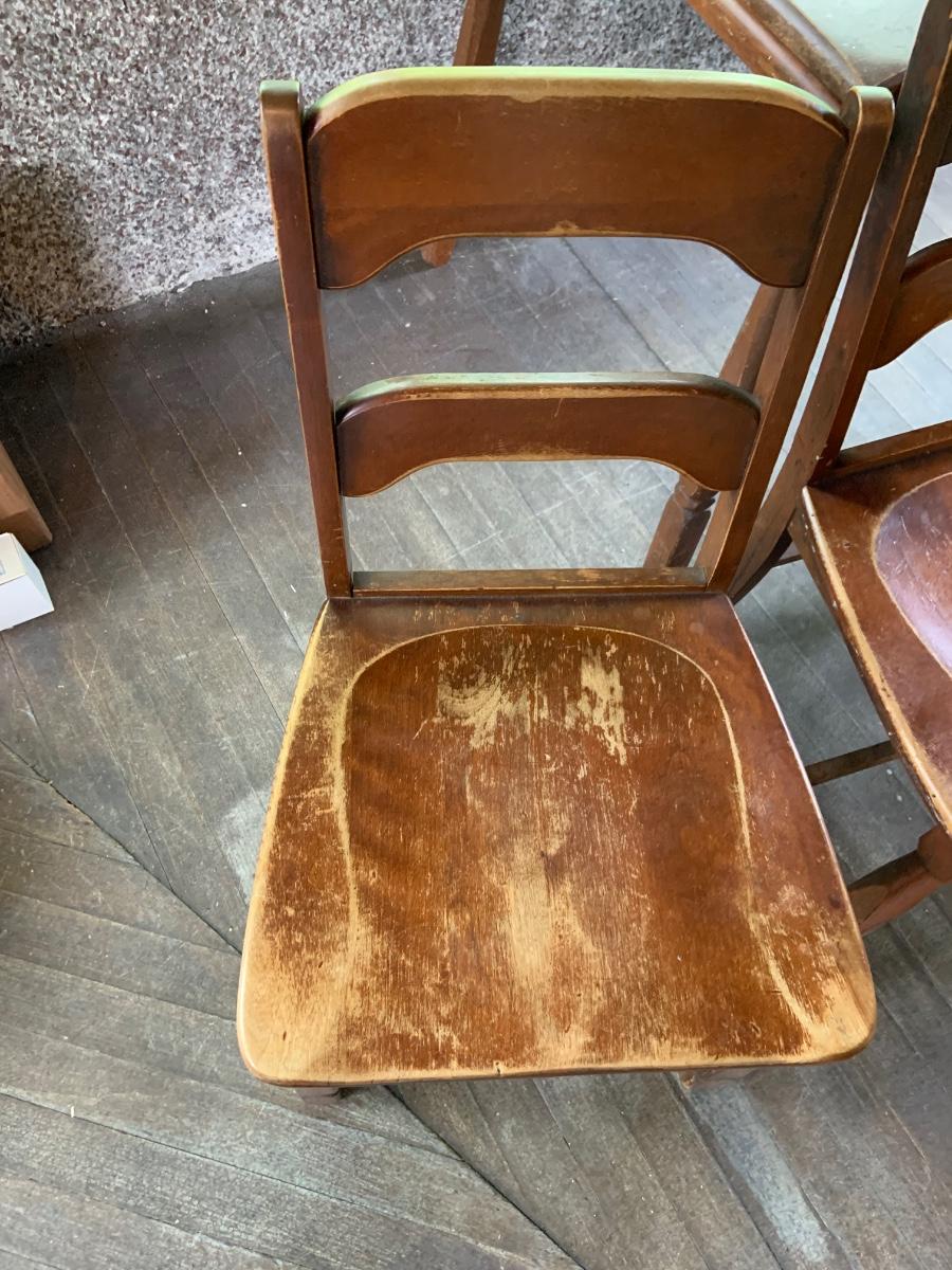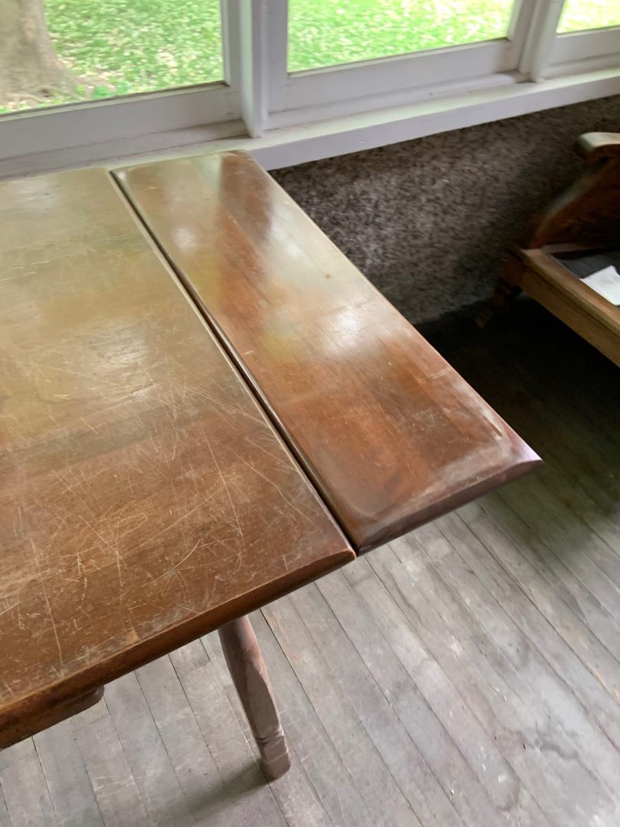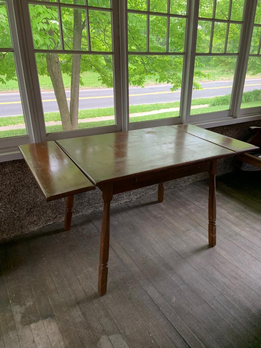 The table measure approximatly 38" x 28" x 30" - 56" with leaf. The chairs are 17" x 15" x 22" .Please see all pictures as they are the best representation of the items. The pictures show condition, measurements if taken, and what is included in the lot. Due to the large amount that we photograph and the time frame, we are not always able to take measurements. All items unless noted, are pre-owned and have been used. If you purchased furniture, you must bring help. We do not allow one person to carry large furniture out on their own. Bring help, tools and a truck for the safety of our client’s homes, and your personal safety. Any damages that result to the property including walls, and floors due to moving of the furniture will be charged to the buyer. Company policy. Thank you.