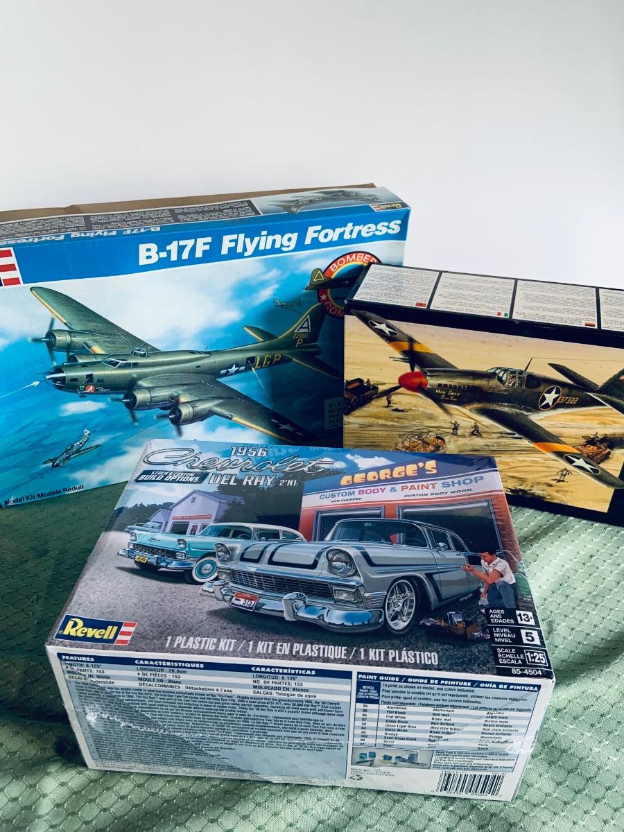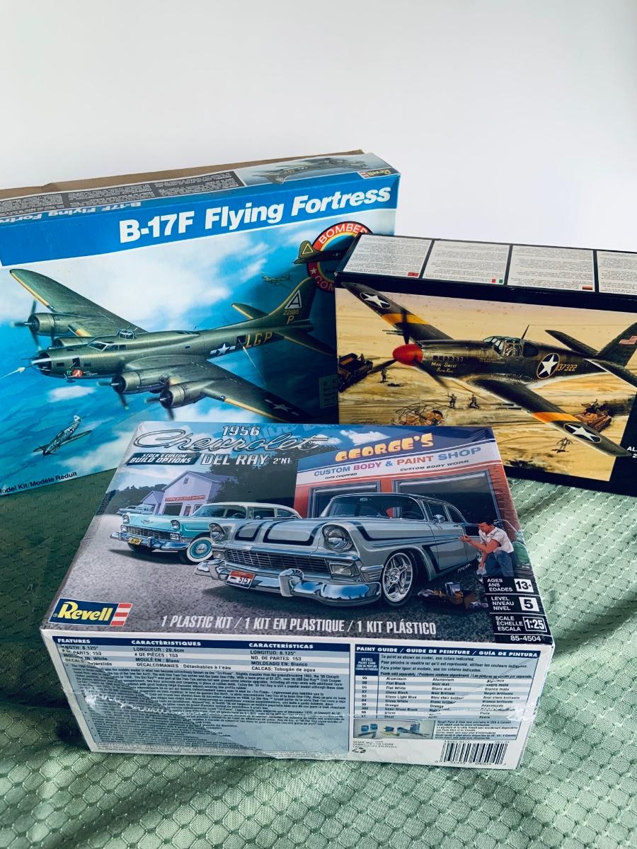 LOT:63G: Model Kits 2 Military Airplanes and a Vintage Car