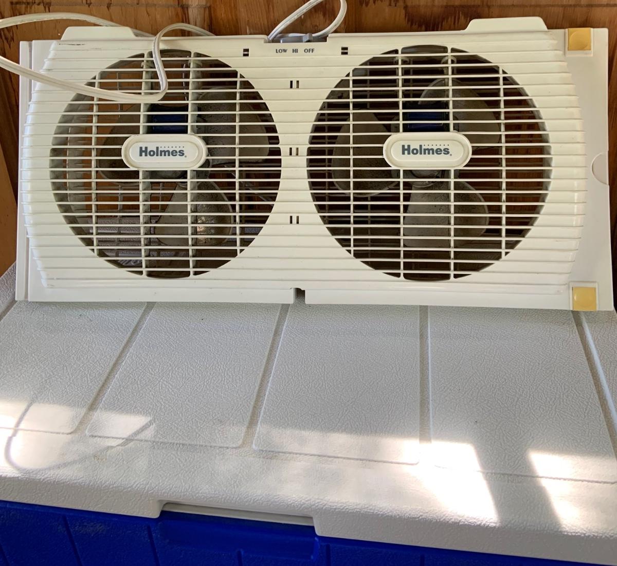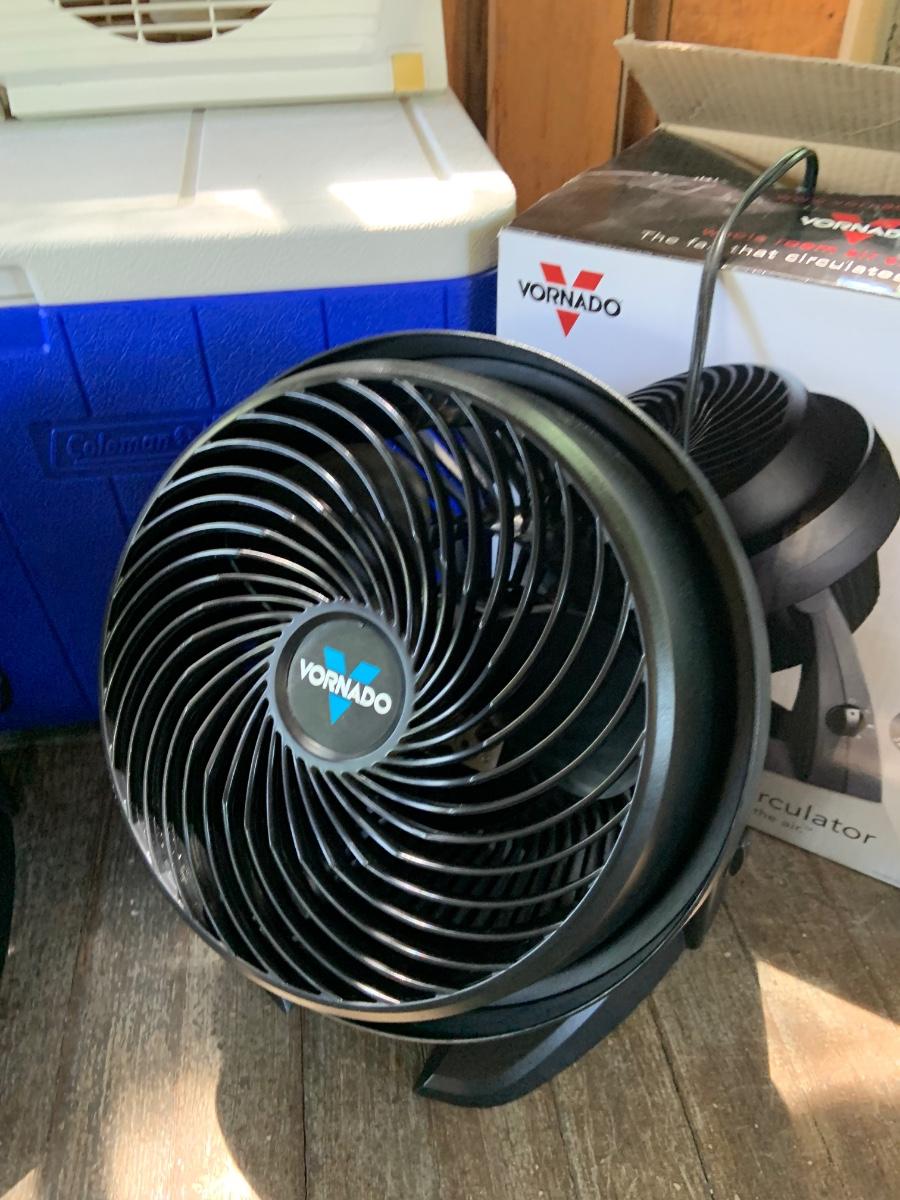 LOT:72: Tornado Floor Fans, Window Fan, Coleman Cooler.