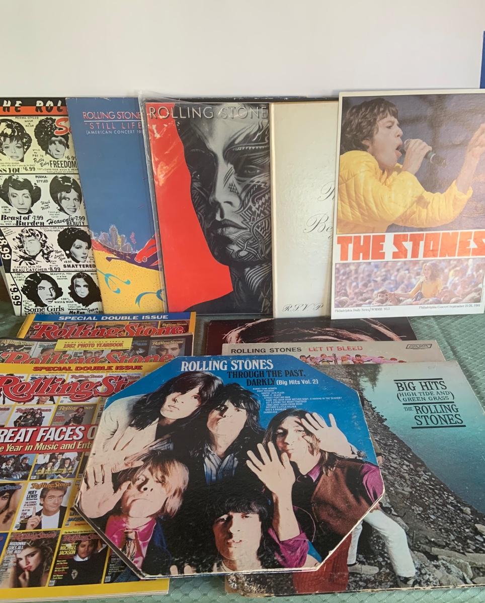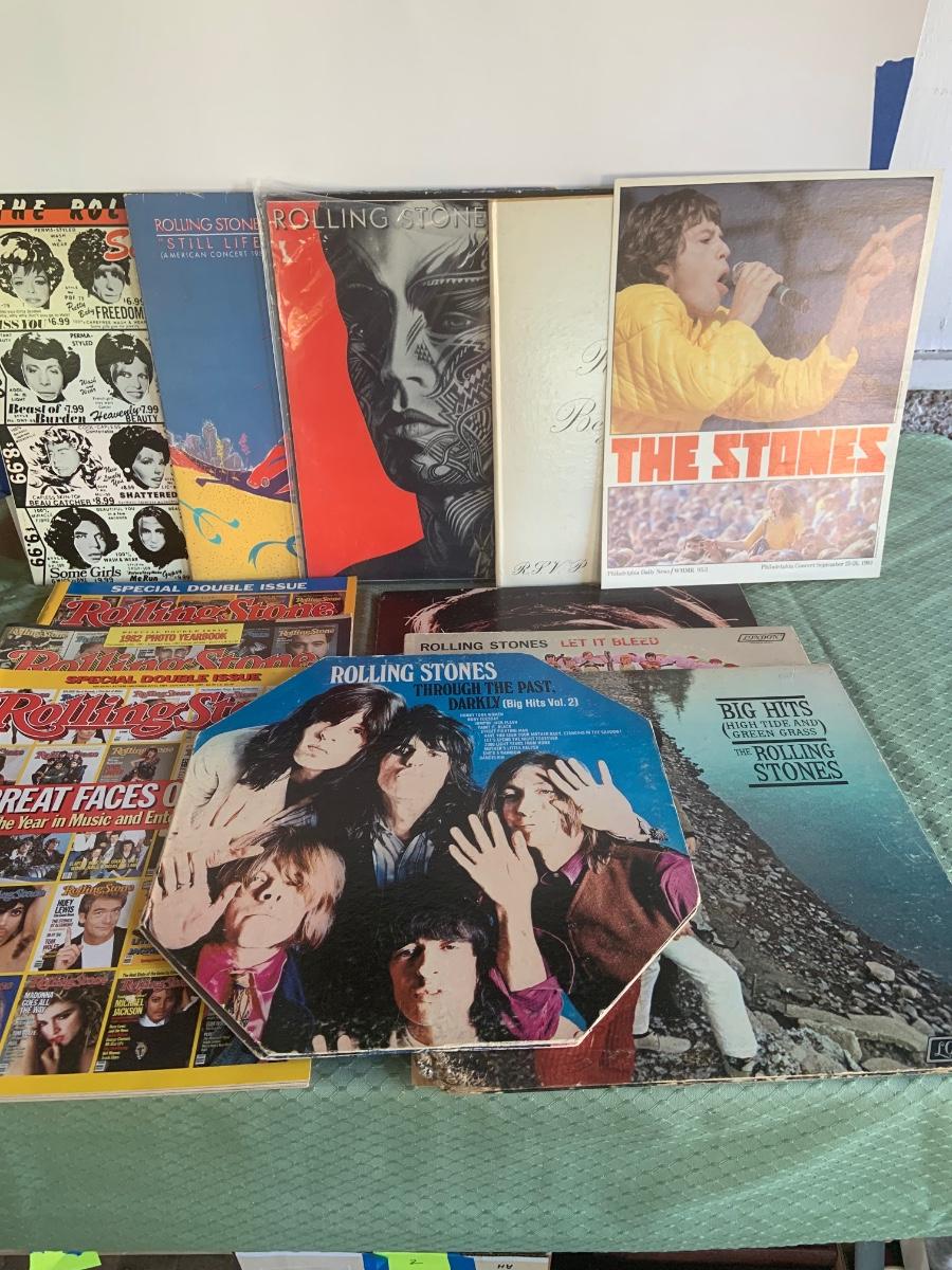 LOT:73G: Rolling Stone Collection - Vinyl Records, a 1981 Concert Poster and Rolling Stones Magazines