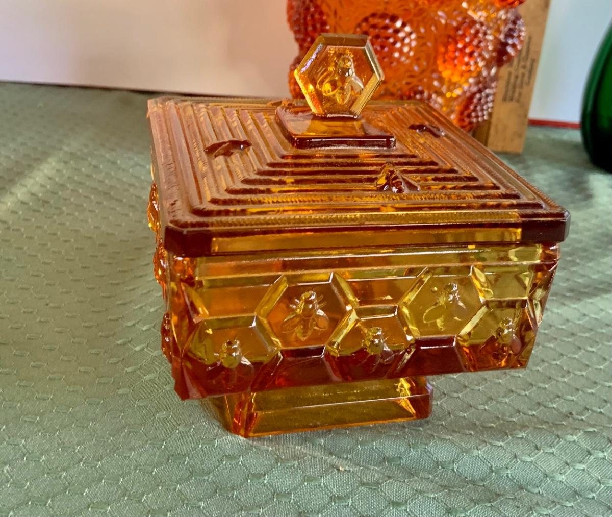 LOT:81G: MCM HTF Fenton Bee/Honeycomb Candy Dish, Fenton "Vessel of Gems" and More Art Glass