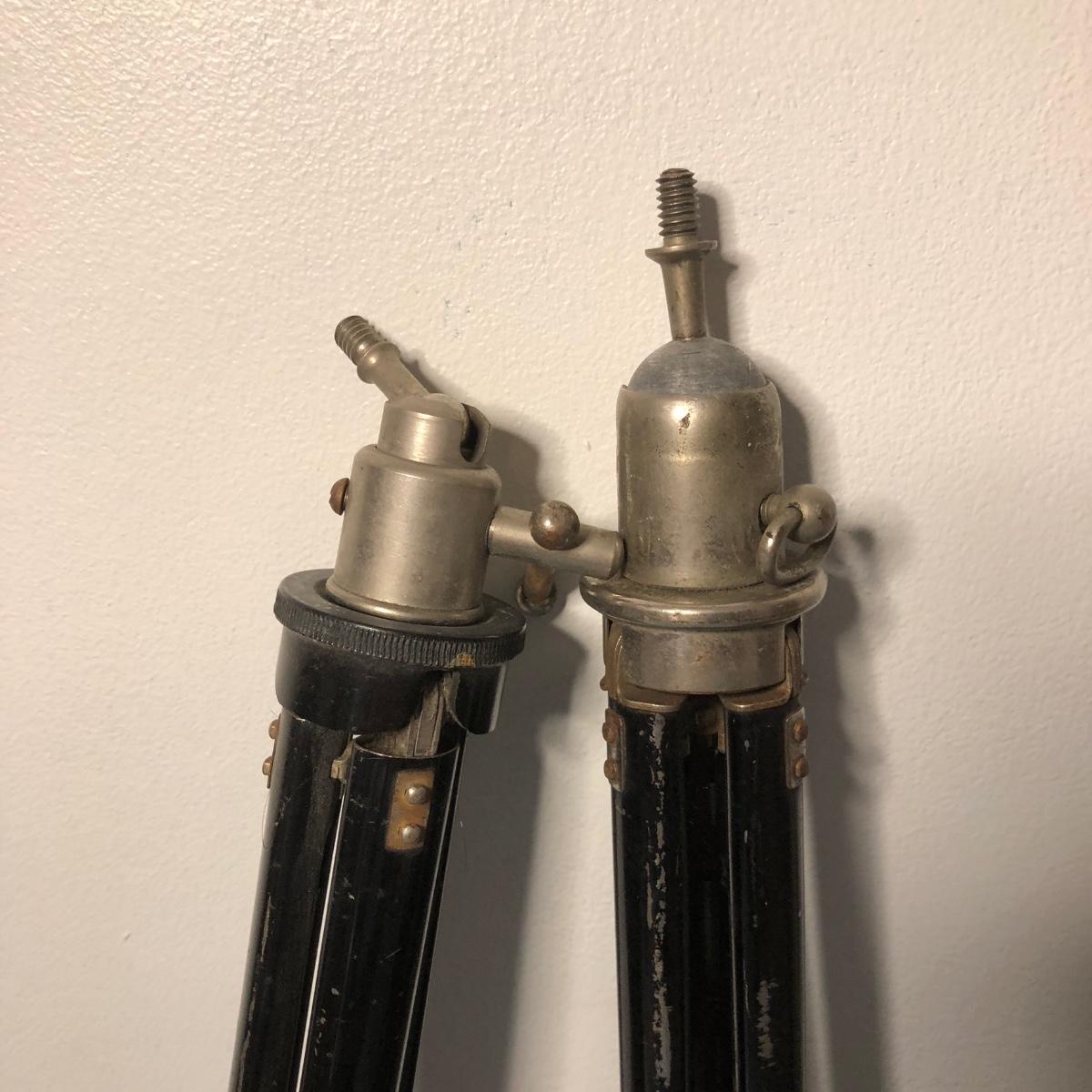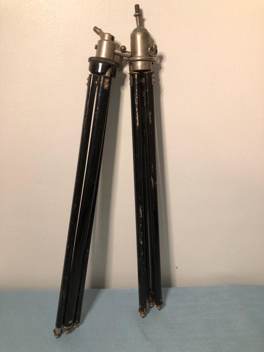 Four folding cameras. One is folded and inside the box, the rest are opened. Includes 2 tripods/stands.