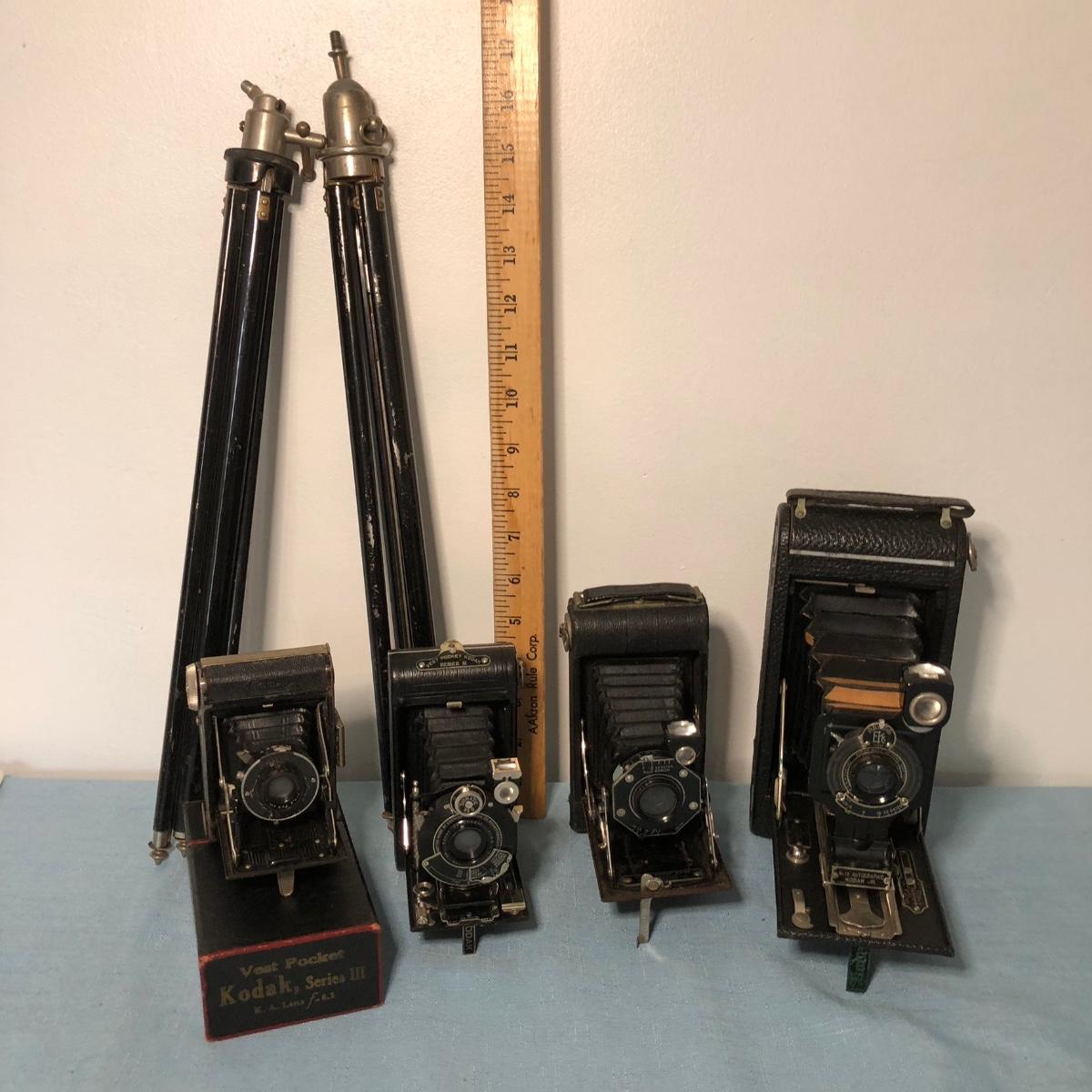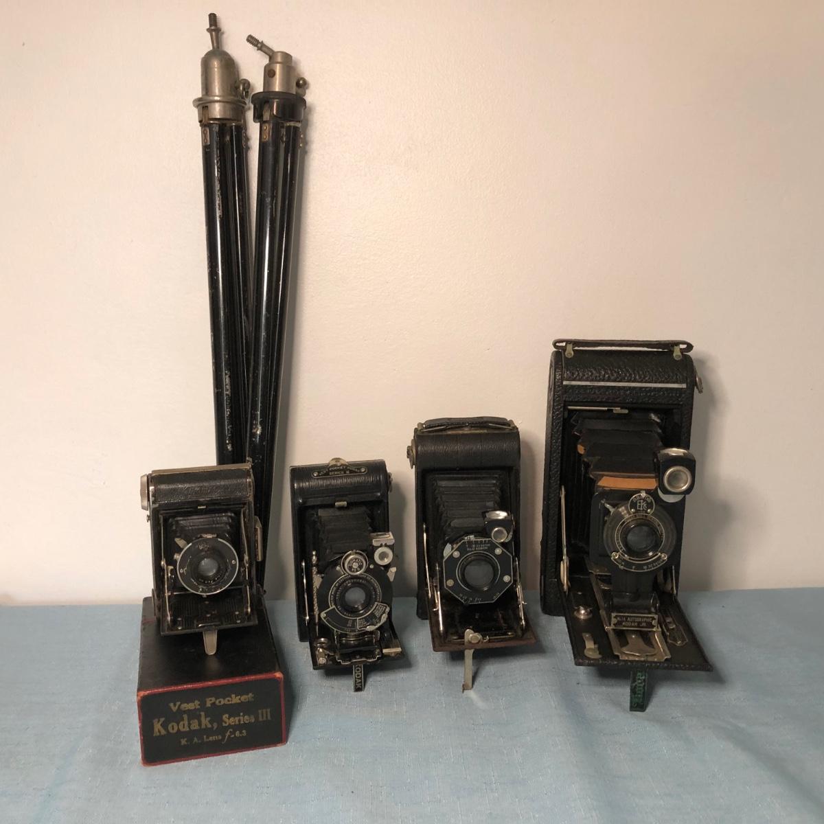 LOT 88M: Vintage Folding Cameras -No. 1A Autographic Kodak Jr., Kodak Junior Six-20, Vest Pocket Kodak Series III, & Leiss Iron Derval