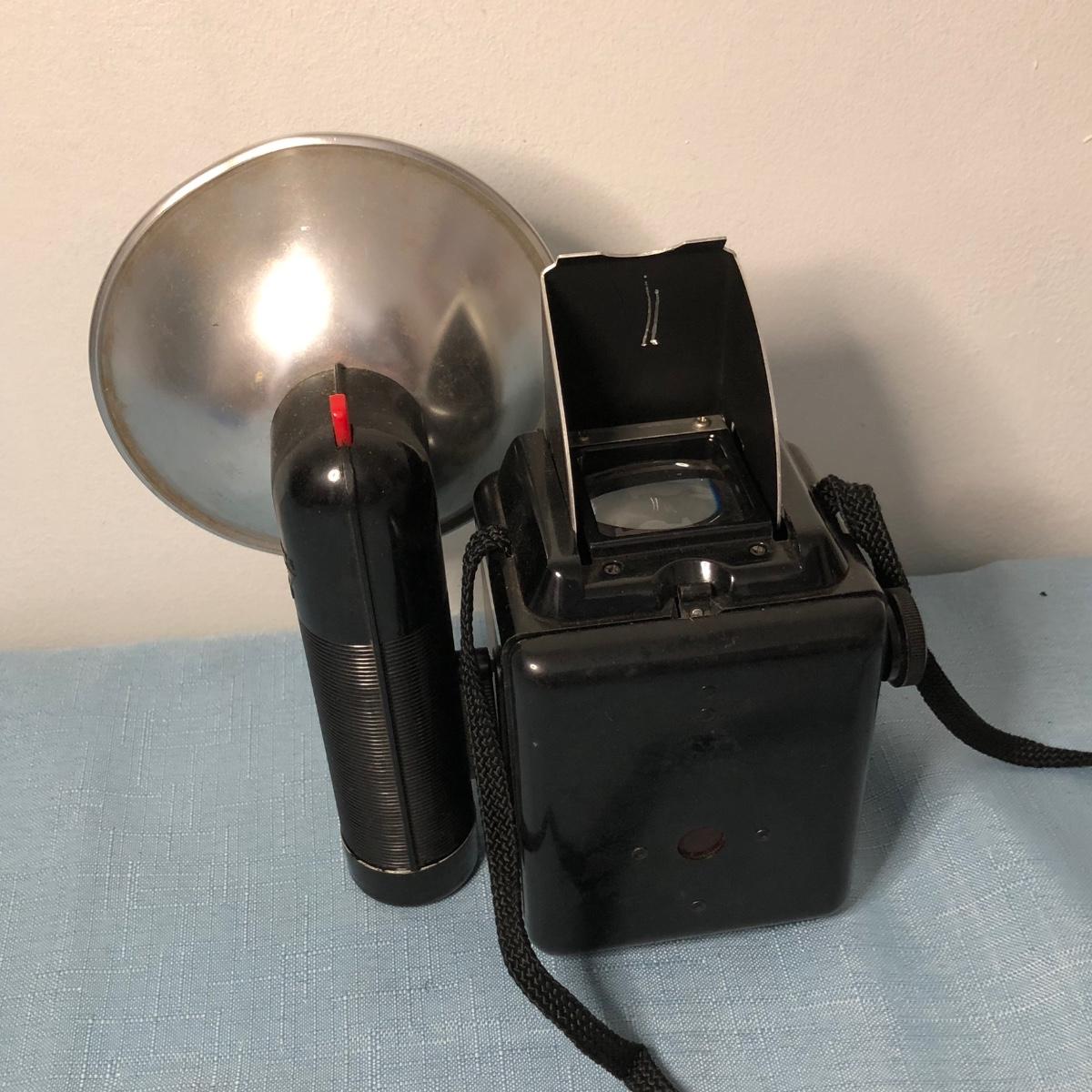 Also includes LIFE Photography Guide, Promaster FT1700 Automatic Flash, a tripod, and a Kodaslide Projector Model 2. The wire on the projector is in bad shape.