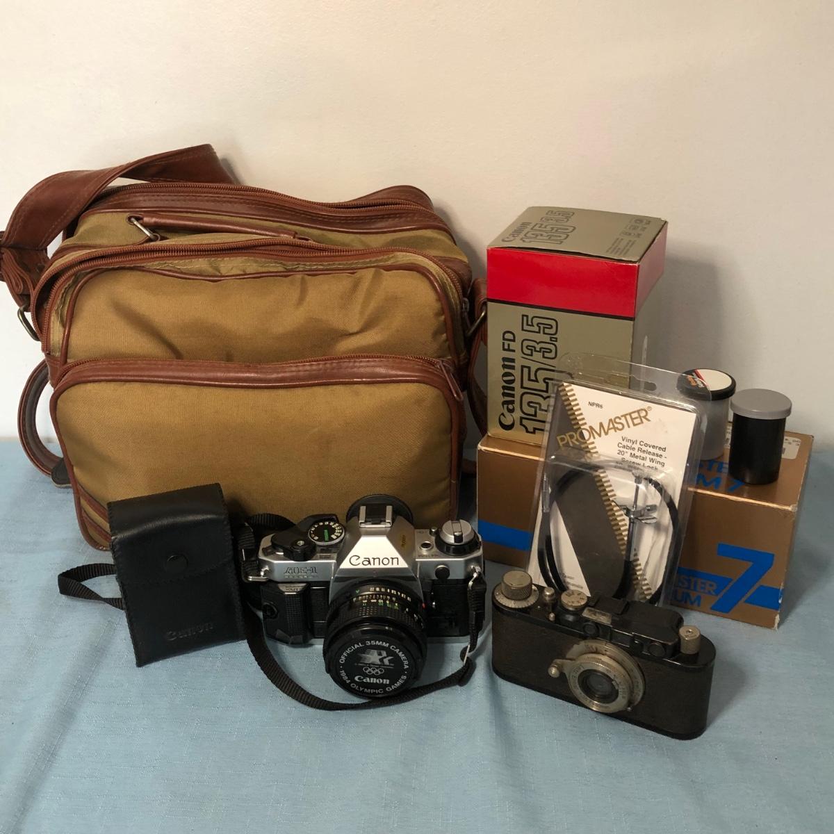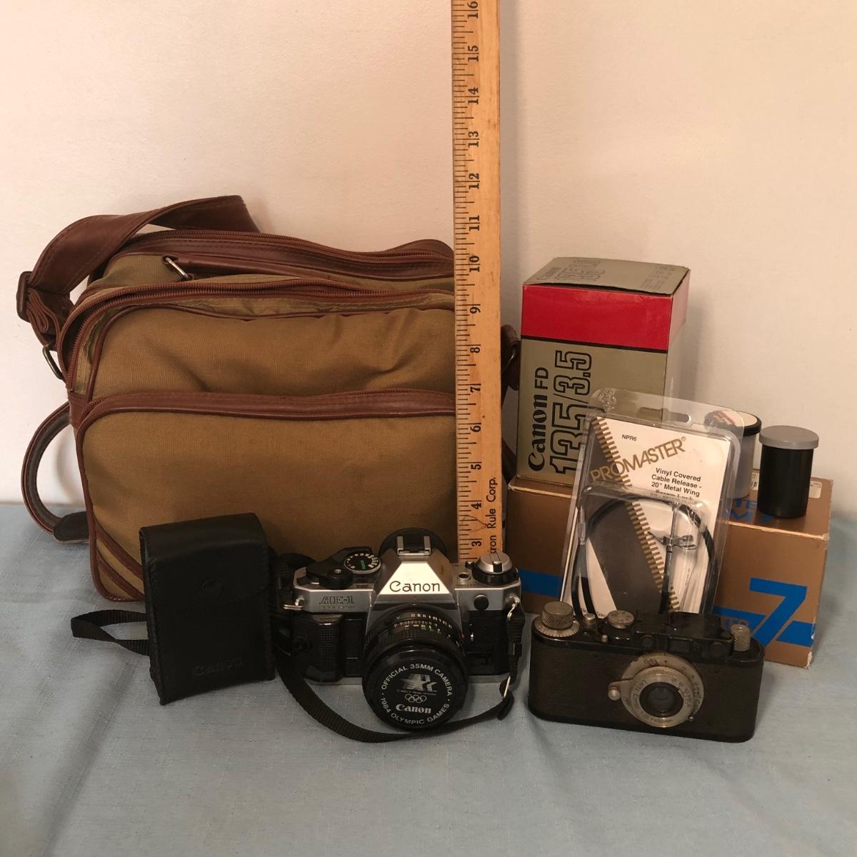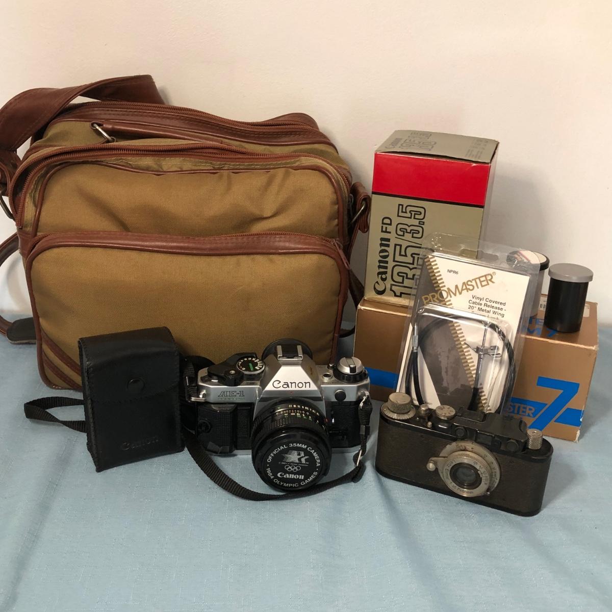 LOT 92M: Canon AE-1 w/ 1984 Olympic Games Cap, Leica Leitz Elmar 35mm Camera, Lenses, & More