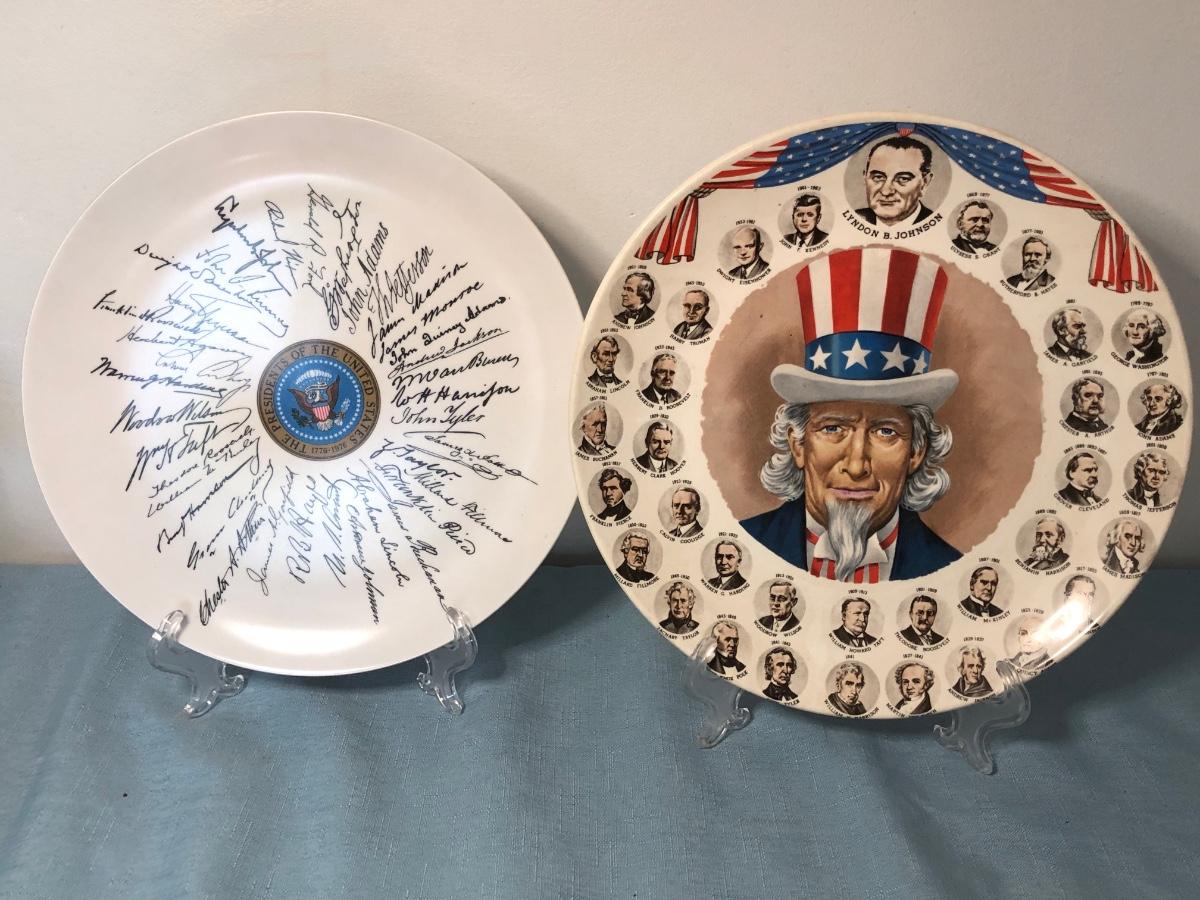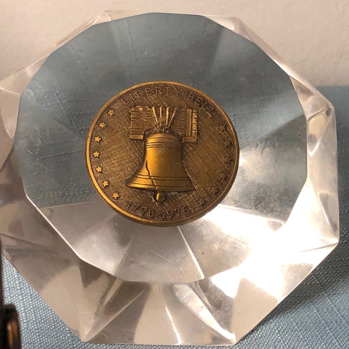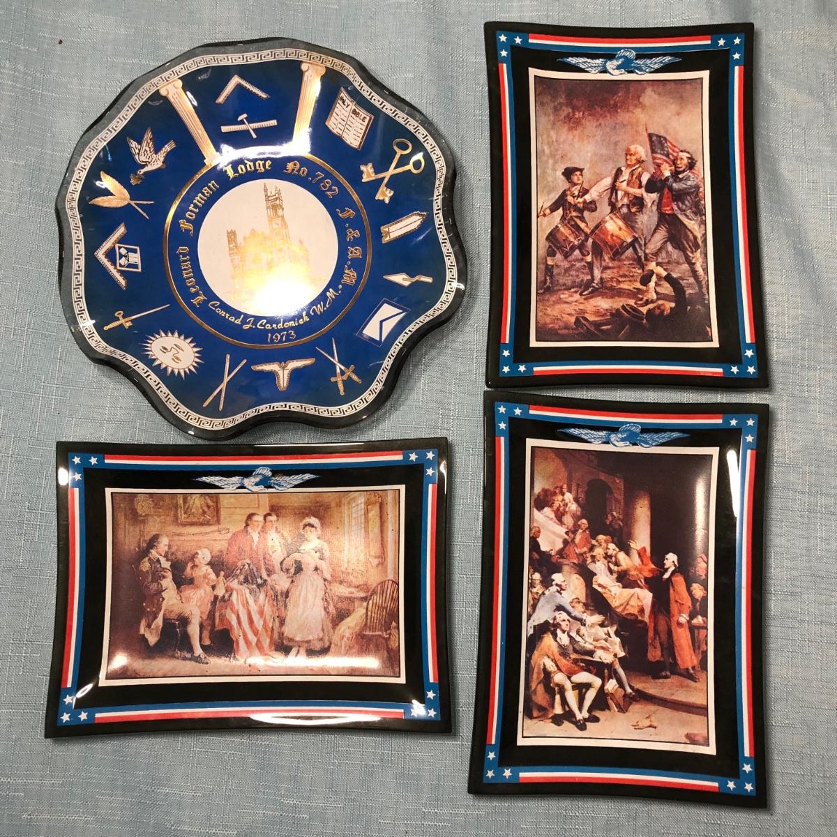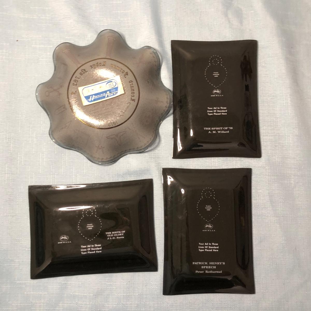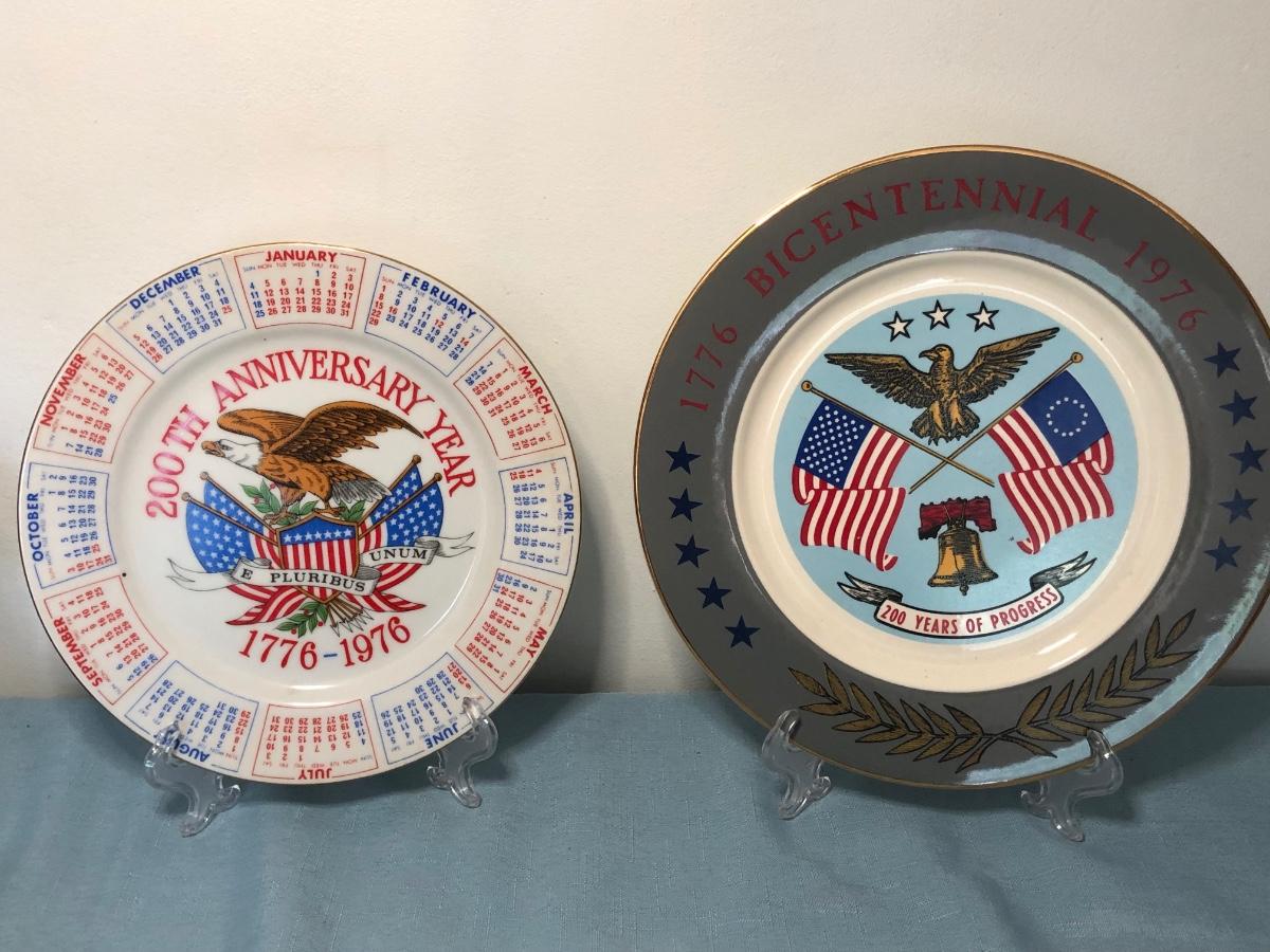 Includes several commemorative plates, Liberty Bell memorabilia, a Spirit of '76 glass, small glass dishes and some books.