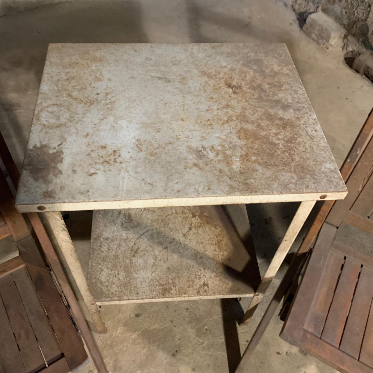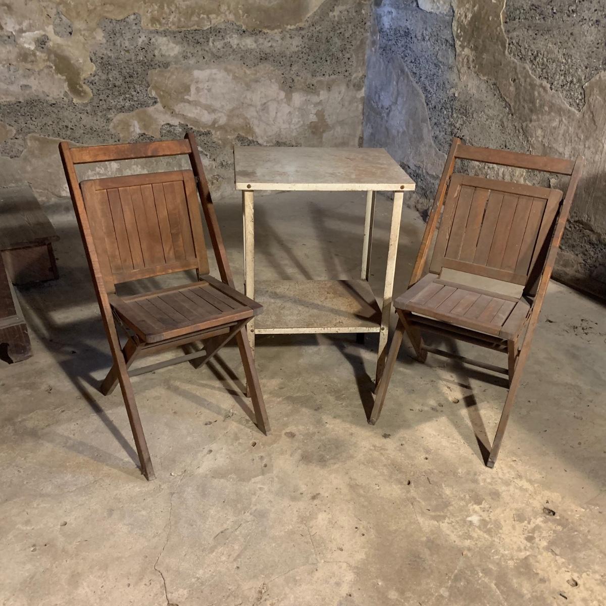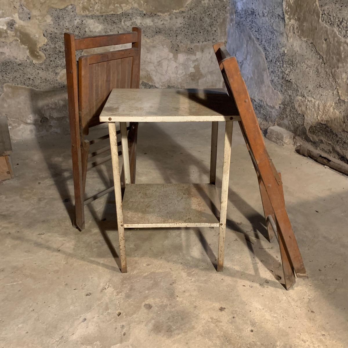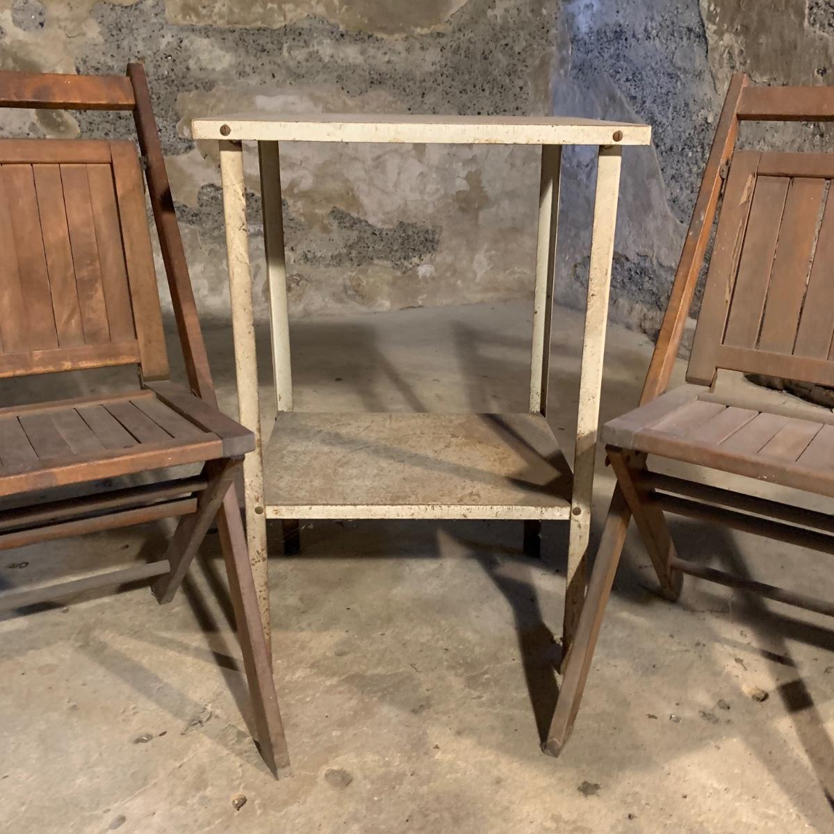 LOT 126R: Basement Finds: Metal Table/Stand & Wooden Folding Chairs