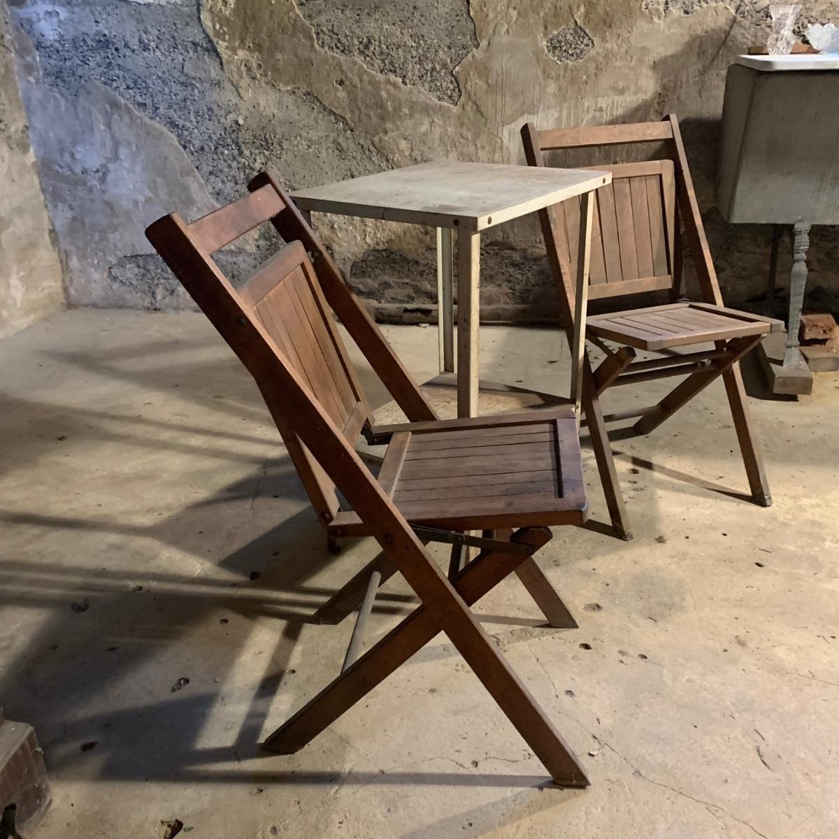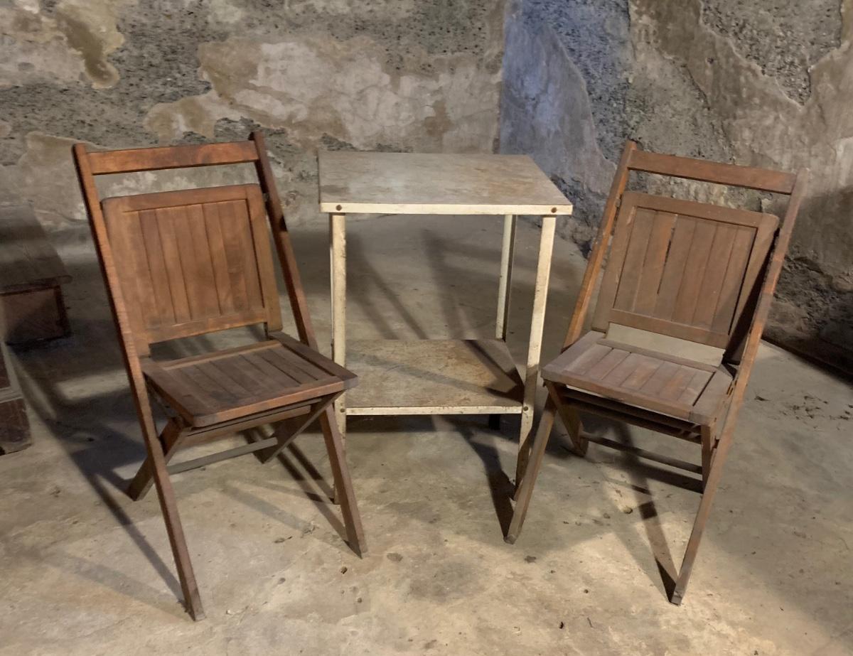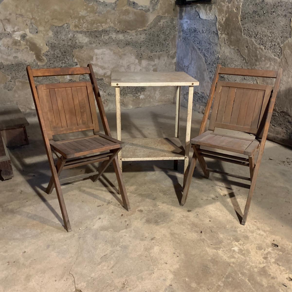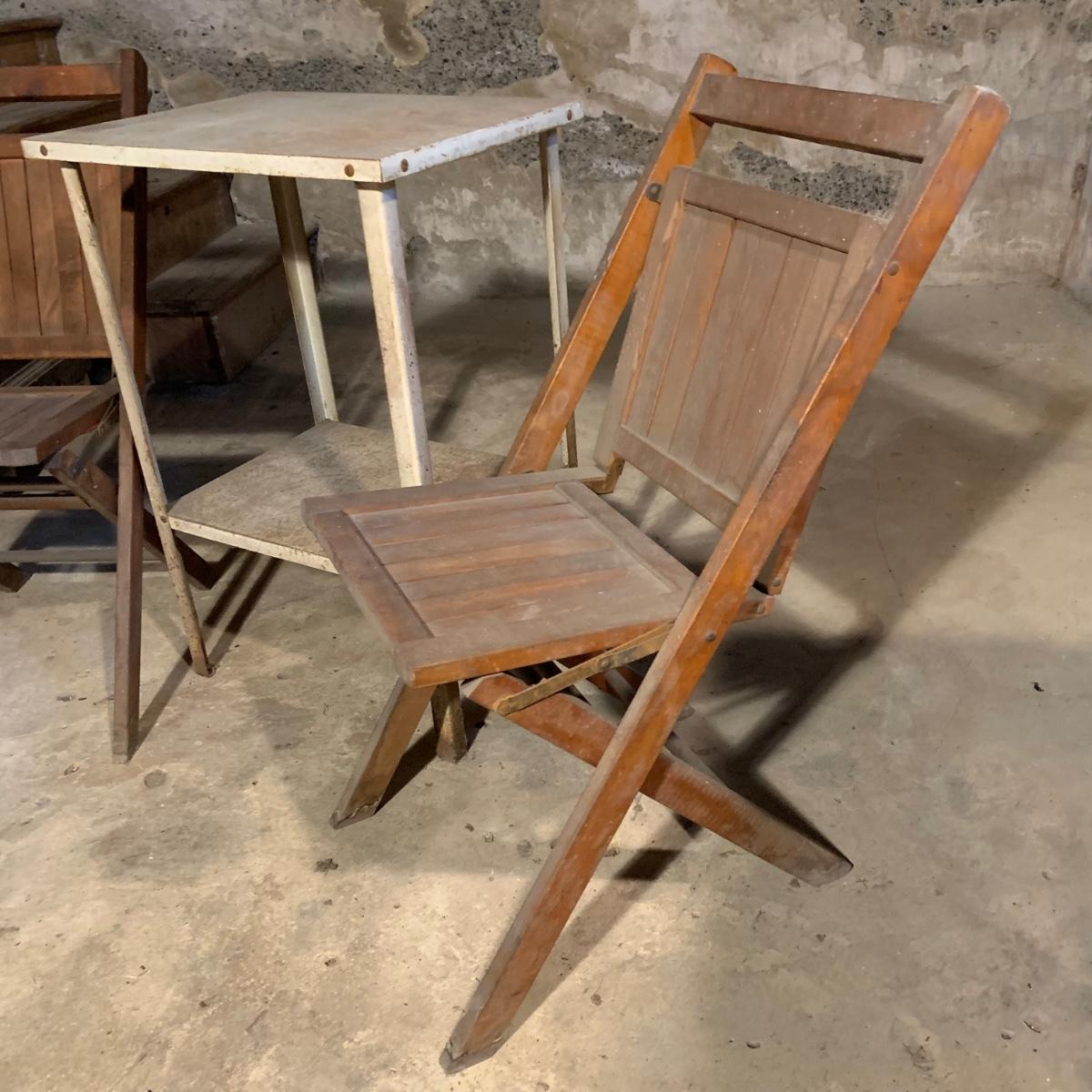 LOT 126R: Basement Finds: Metal Table/Stand & Wooden Folding Chairs