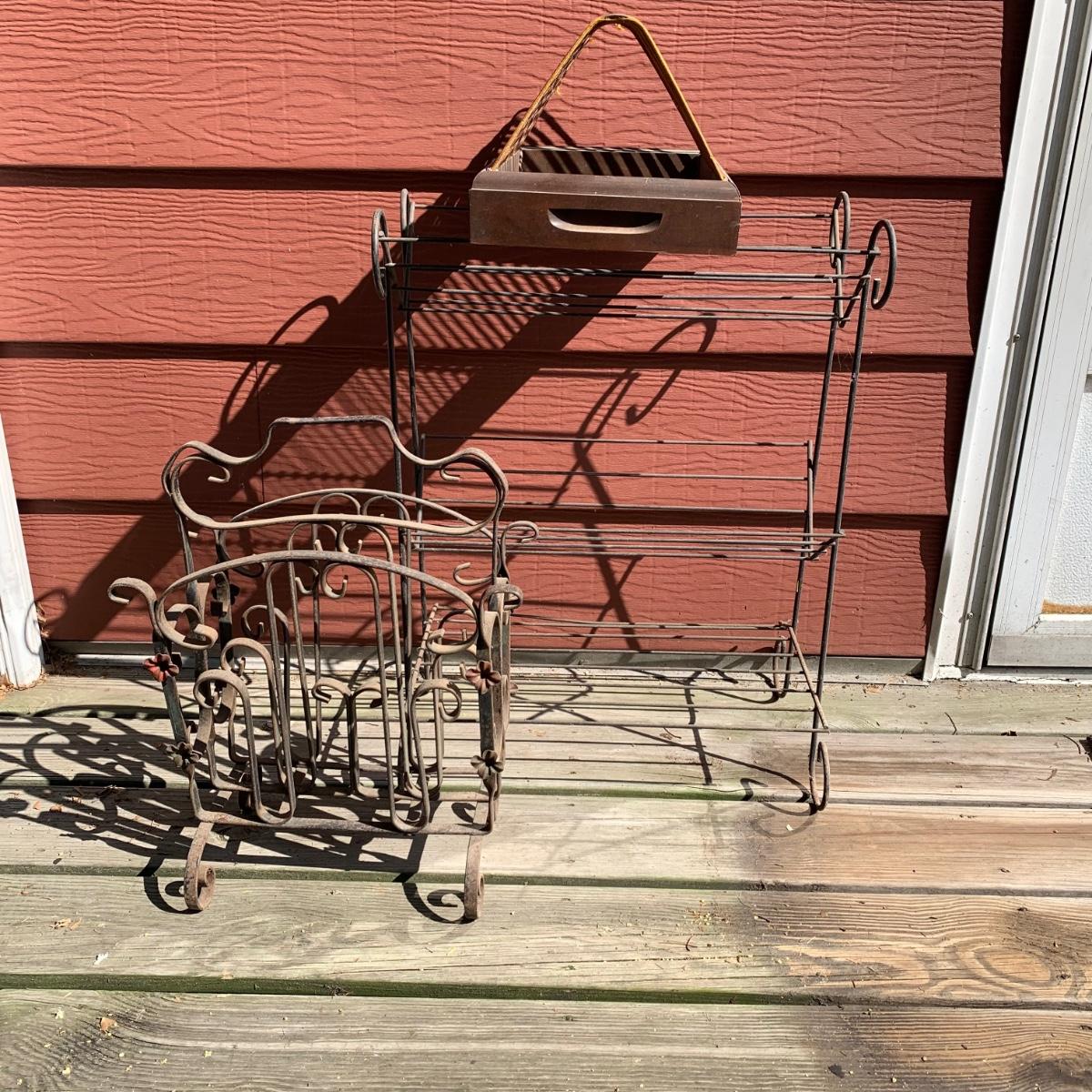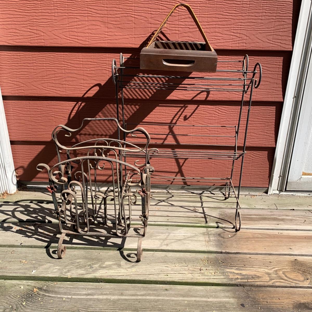 LOT 151R: Vintage Metal Stand Collection: Magazine Rack, Book Stand & Record Holder