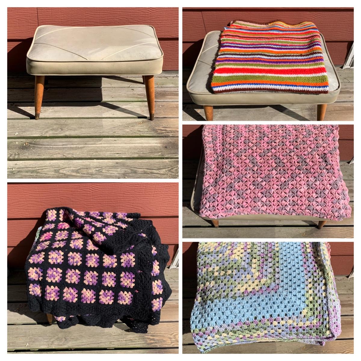 LOT 154R: Afghans & Vintage Vinyl Footstool