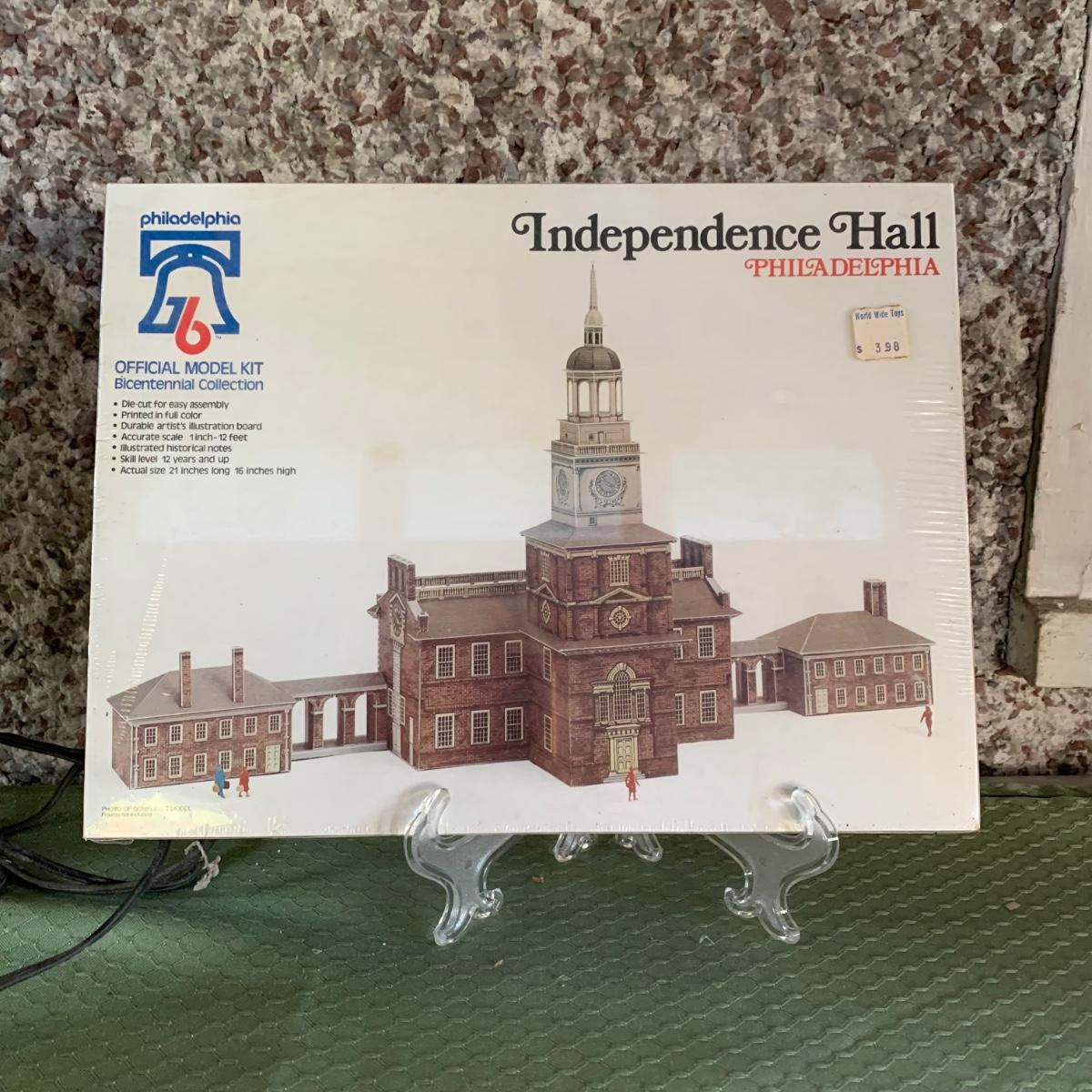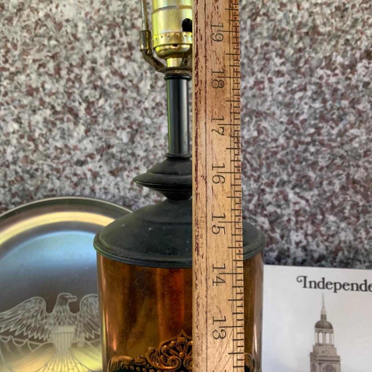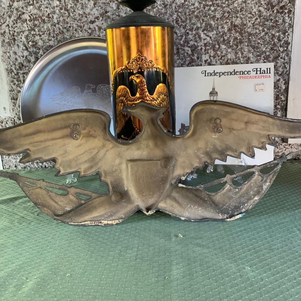 LOT 157R: Vintage Tin Eagle Lamp, Sexton Cast Aluminum Eagle, Fame' Walnut Liberty Plate, Independence Hall Model Kit & More