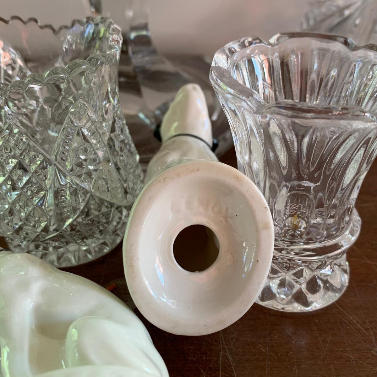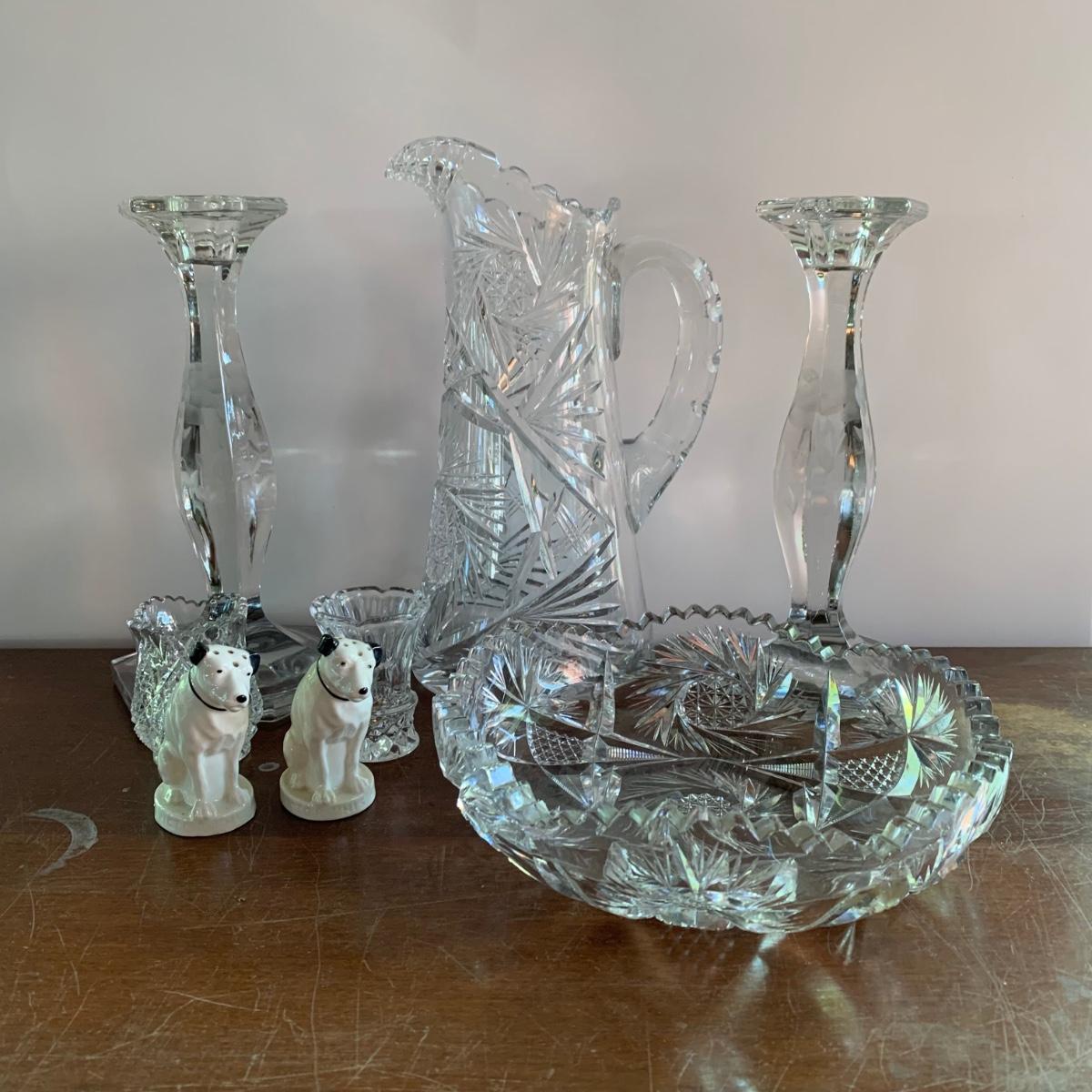 LOT 159R: Lenox "Nipper" Salt/Pepper, Elegant Crystal Pitcher, Candle Sticks & More
