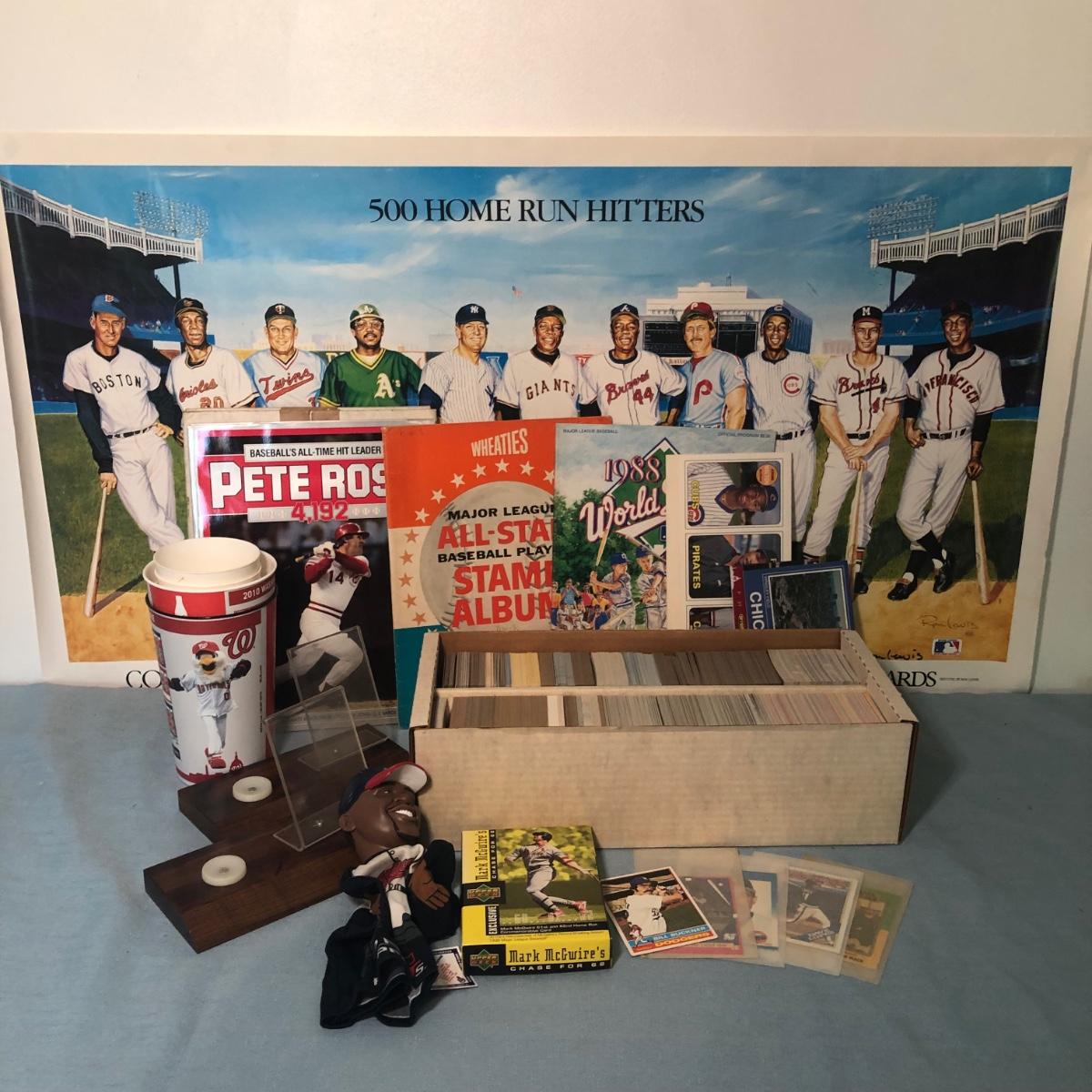 LOT 163M: Baseball Collection - Wheaties All-Star Stamp Album, Vintage 7-Eleven Cups, 500 Home Run  Hitters Poster, Cards & More