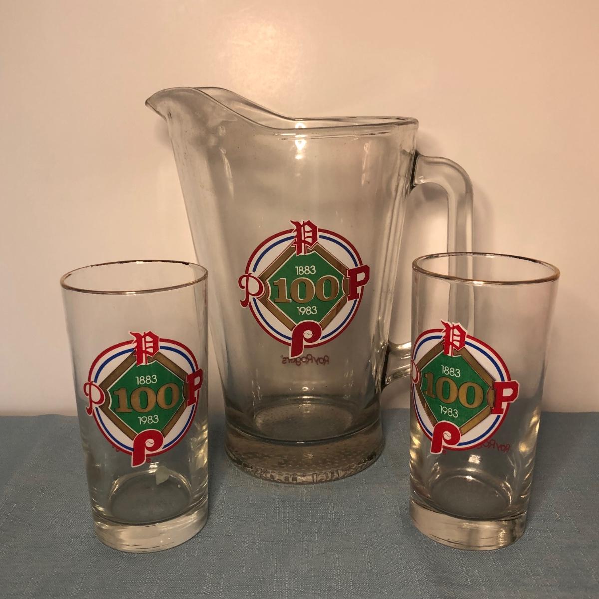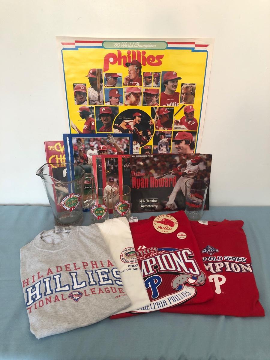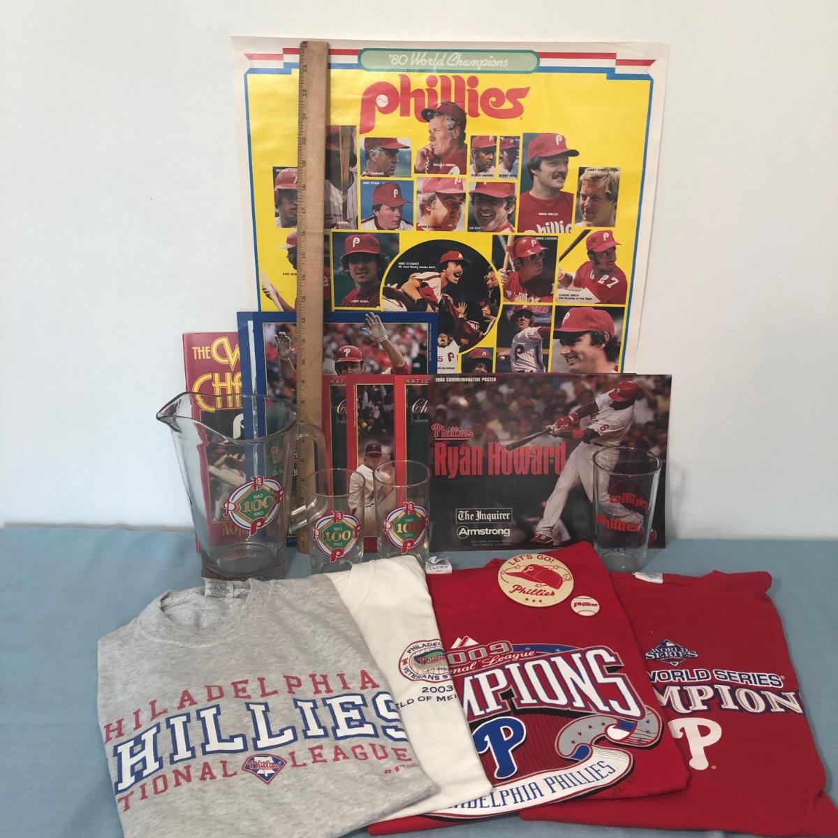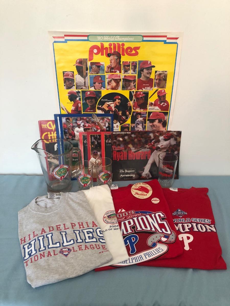LOT 170M: Phillies Collection - Roy Rogers 100 Years Pitcher & Glasses, Poster, T-Shirts (L & XL), Buttons & More