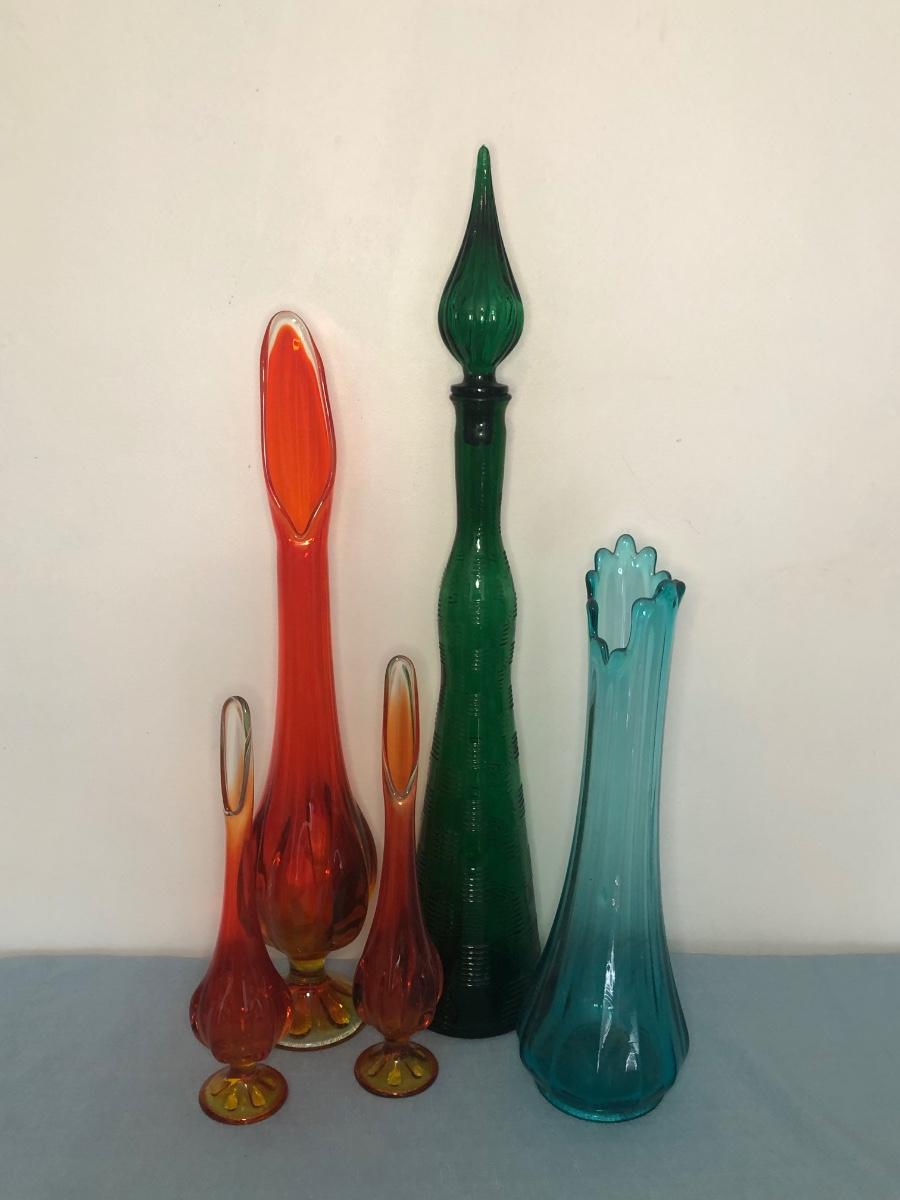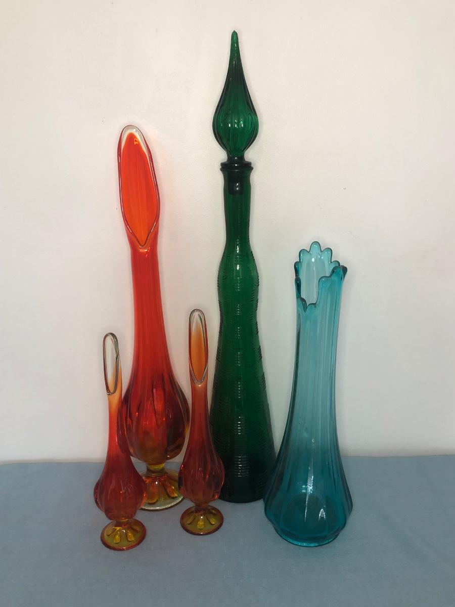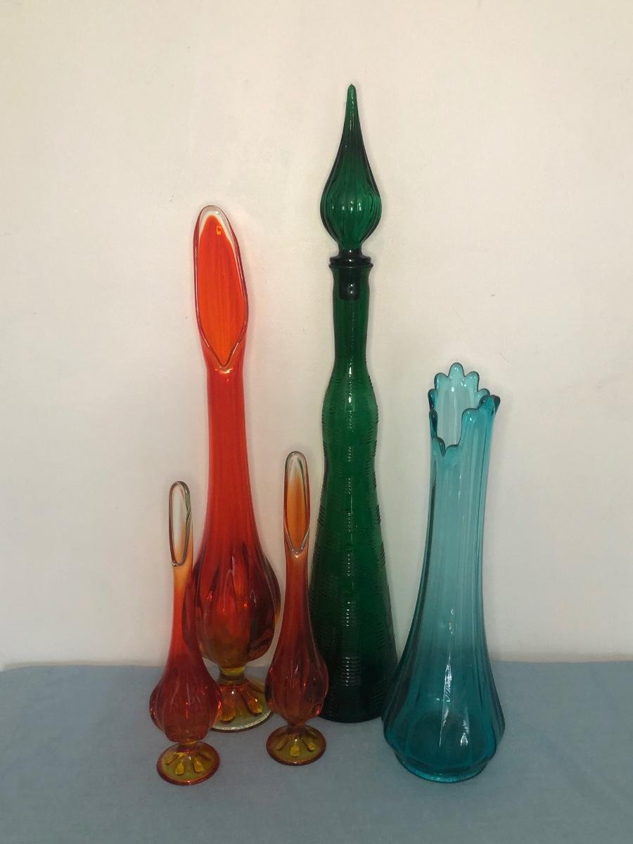 LOT 174M: MCM Art Glass 20" Decanter (Empoli), Viking Swung Glass Vases and More