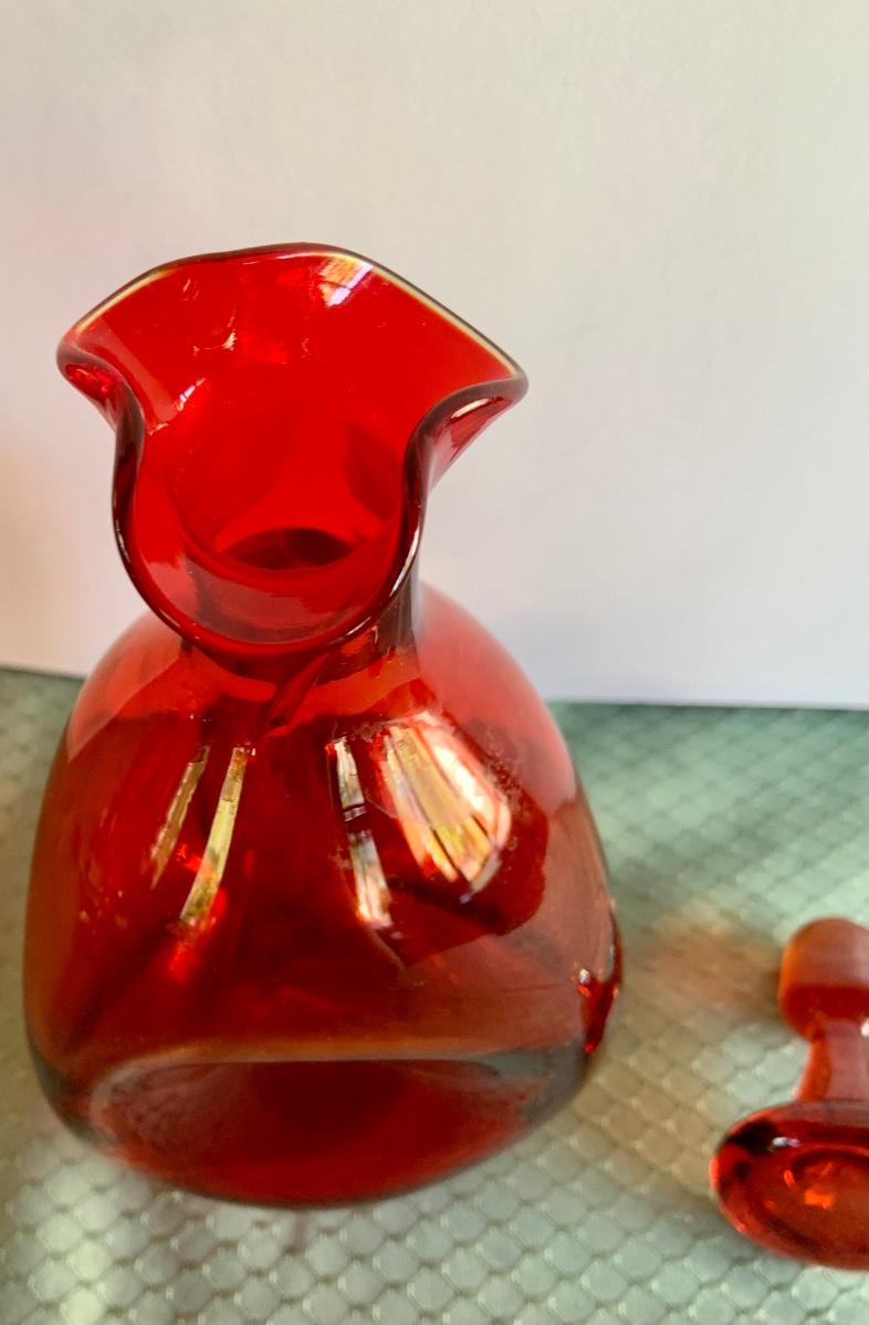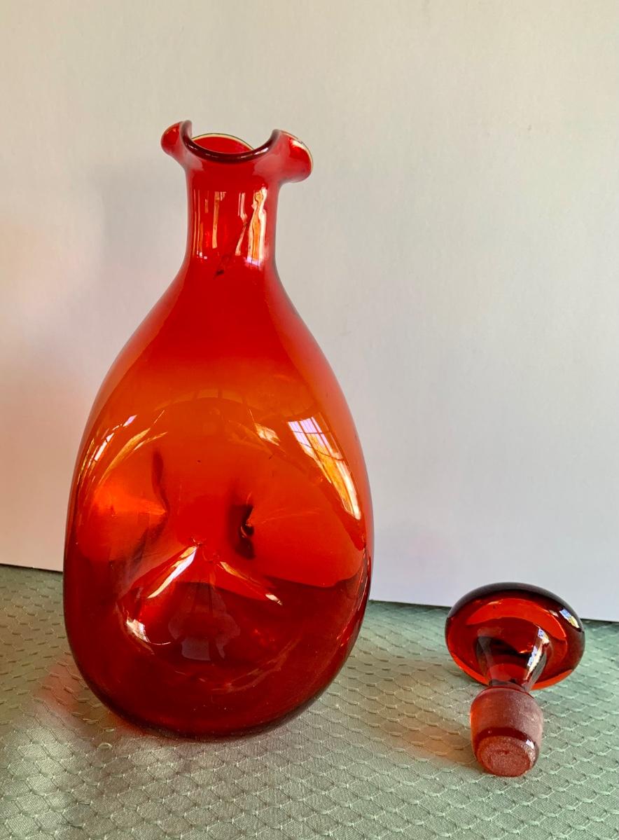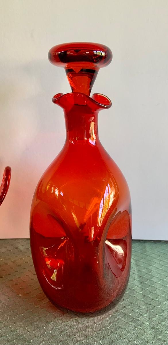 Beautiful pieces of hard to find art glass. These are not marked but are attributed to Blenko and Viking glass. THe decanters are hard to find in the pinched side style with original glass stopper. Please see all pictures as they are the best representation of the items. The pictures show condition, measurements if taken, and what is included in the lot. Due to the large amount that we photograph and the time frame, we are not always able to take measurements. All items unless noted, are pre-owned and have been used. If you purchased furniture, you must bring help. We do not allow one person to carry large furniture out on their own. Bring help, tools and a truck for the safety of our client’s homes, and your personal safety. Any damages that result to the property including walls, and floors due to moving of the furniture will be charged to the buyer. Company policy. Thank you.
