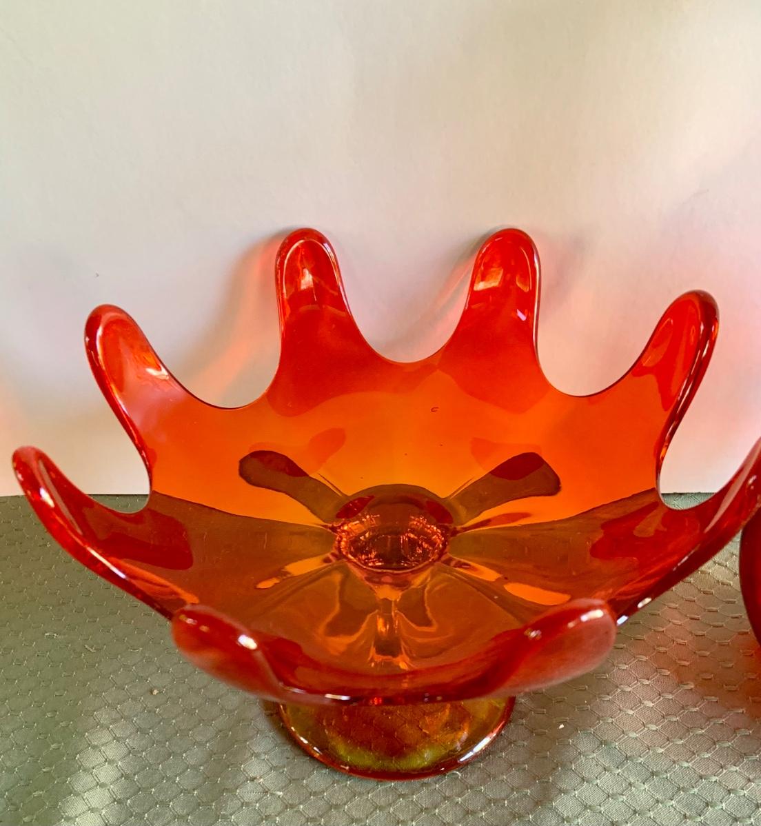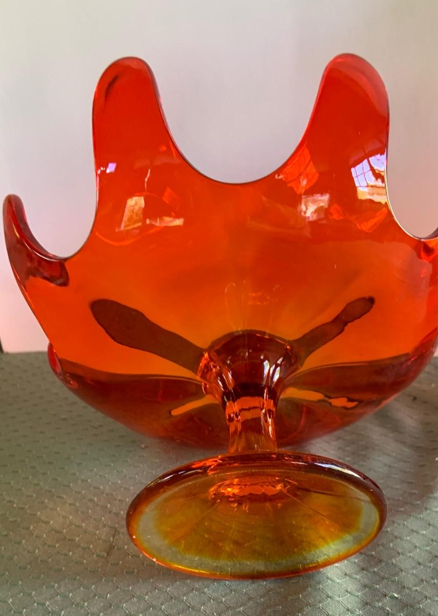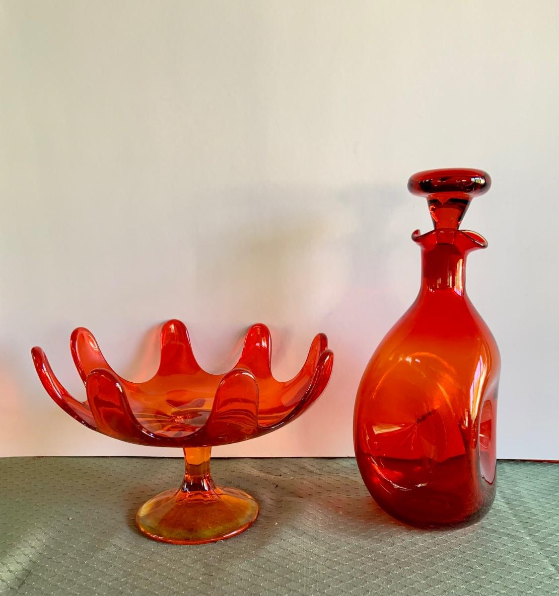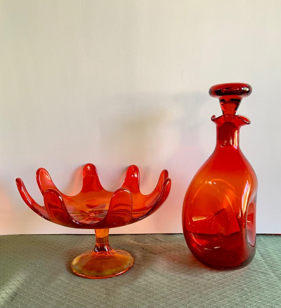 LOT:191: MCM HTF Blenko Pinched Decanter & Viking Glass Petal Bowl