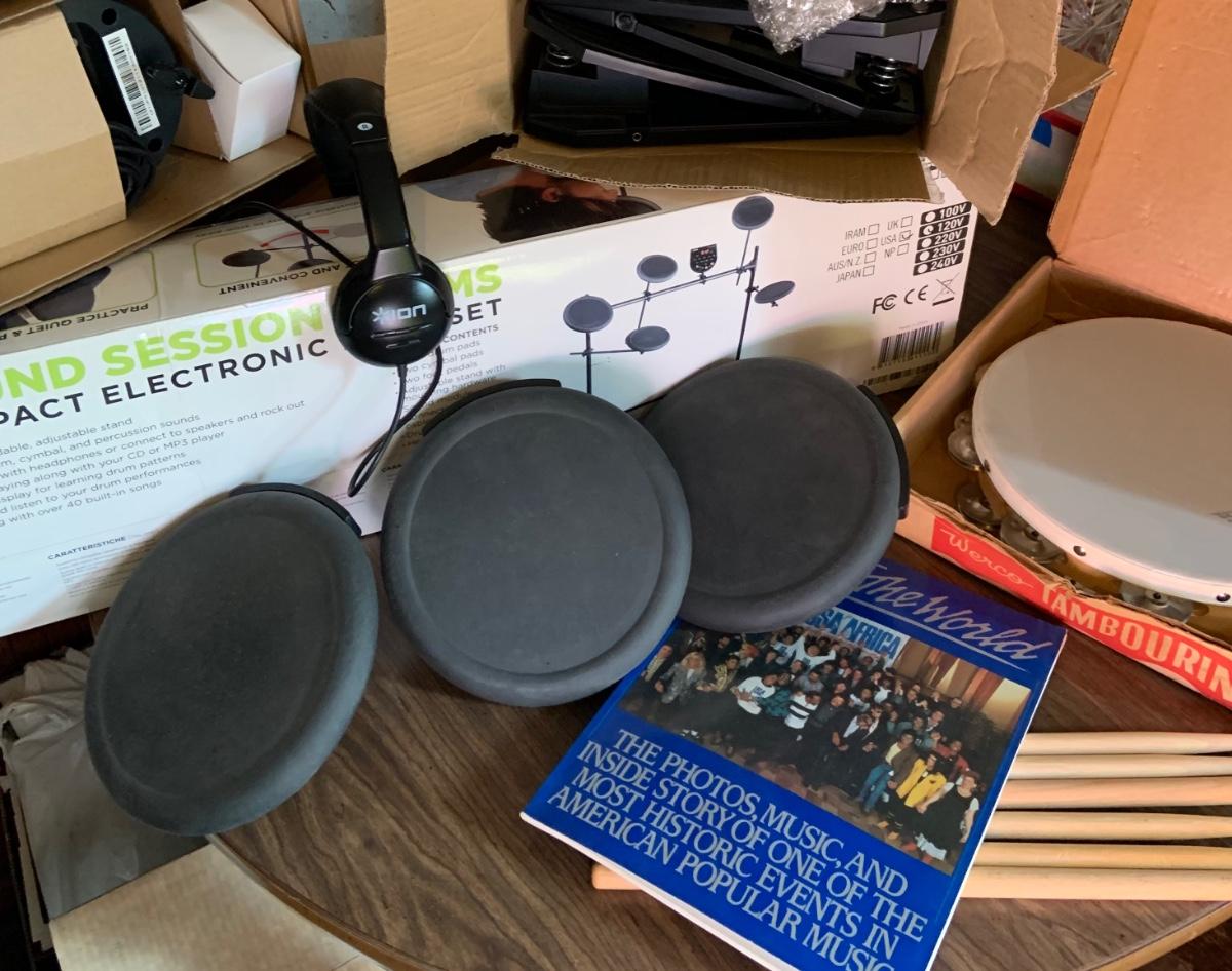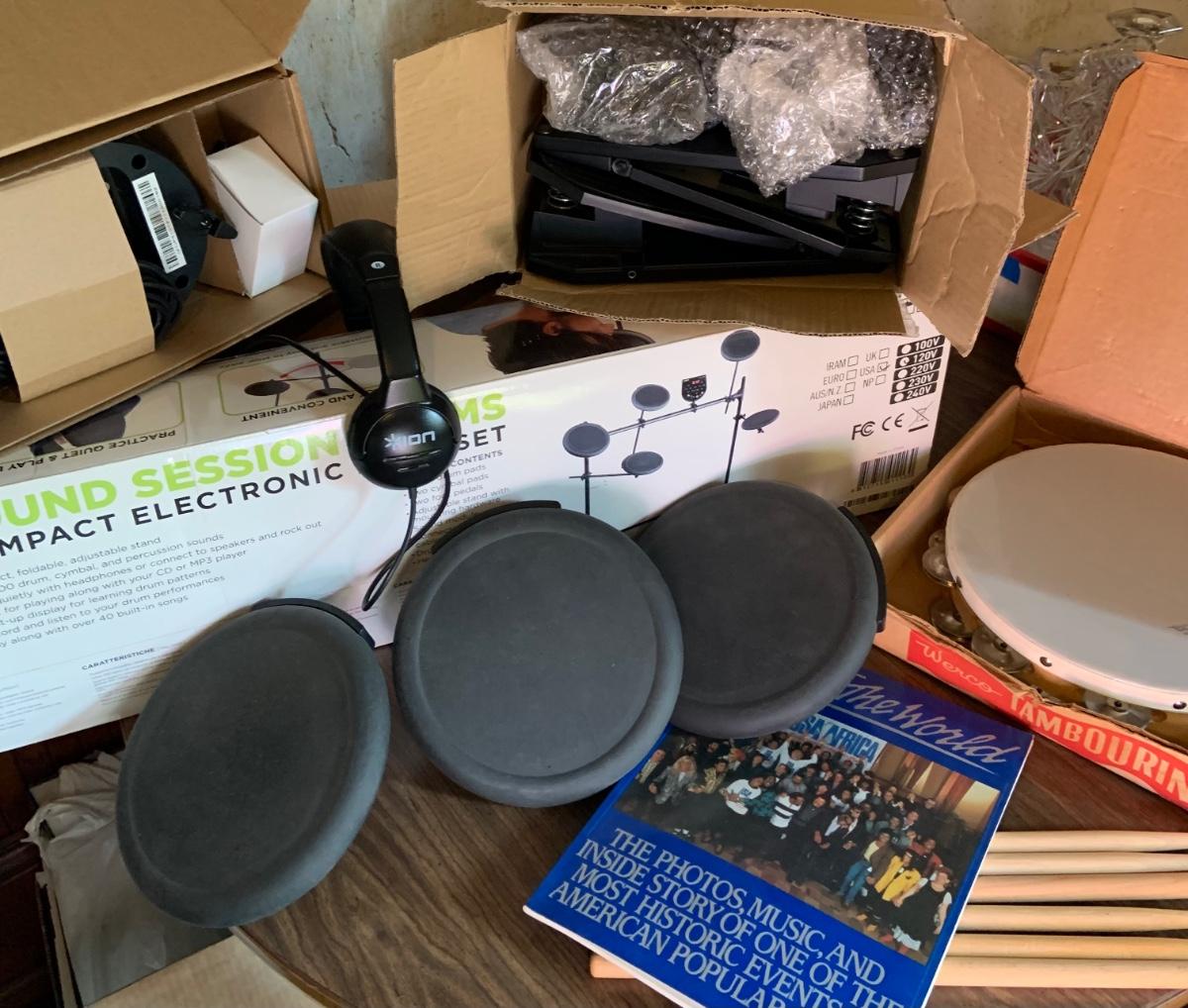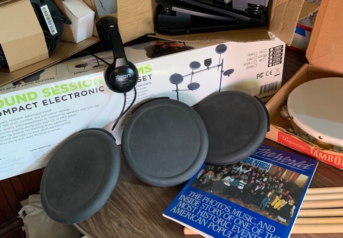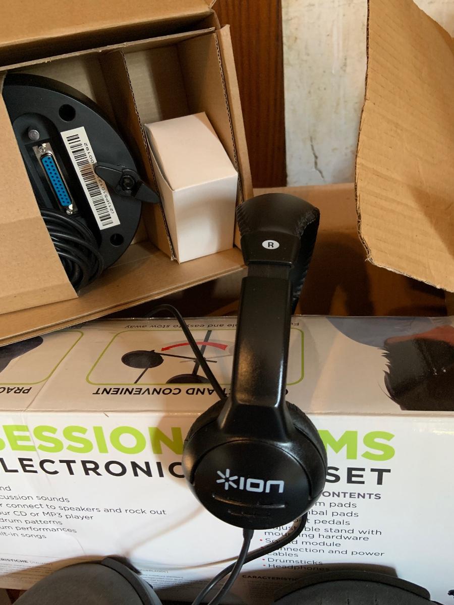 LOT:195G: Ion Sound Session Electronic Drum set with Head Phones, Drum Sticks, Waco Tamourine and More