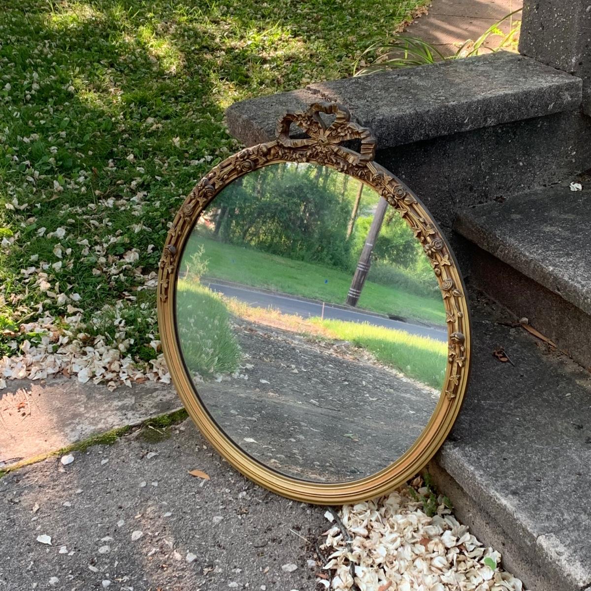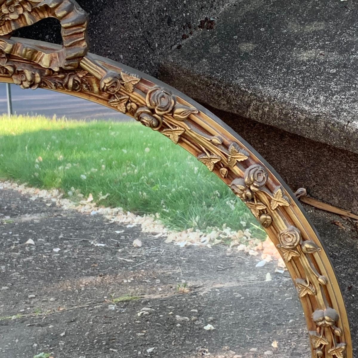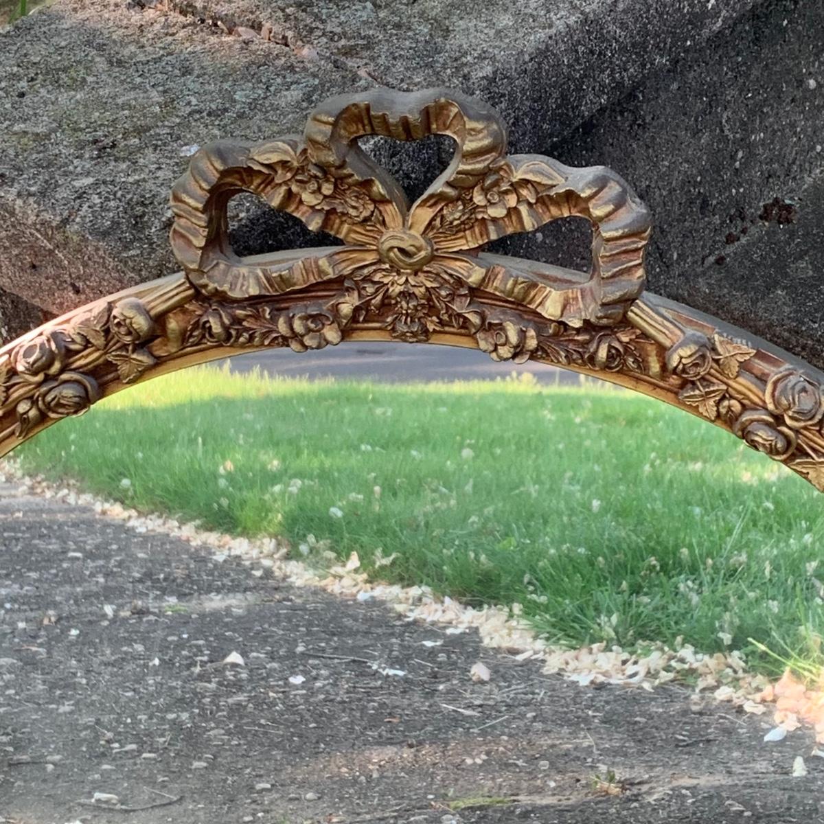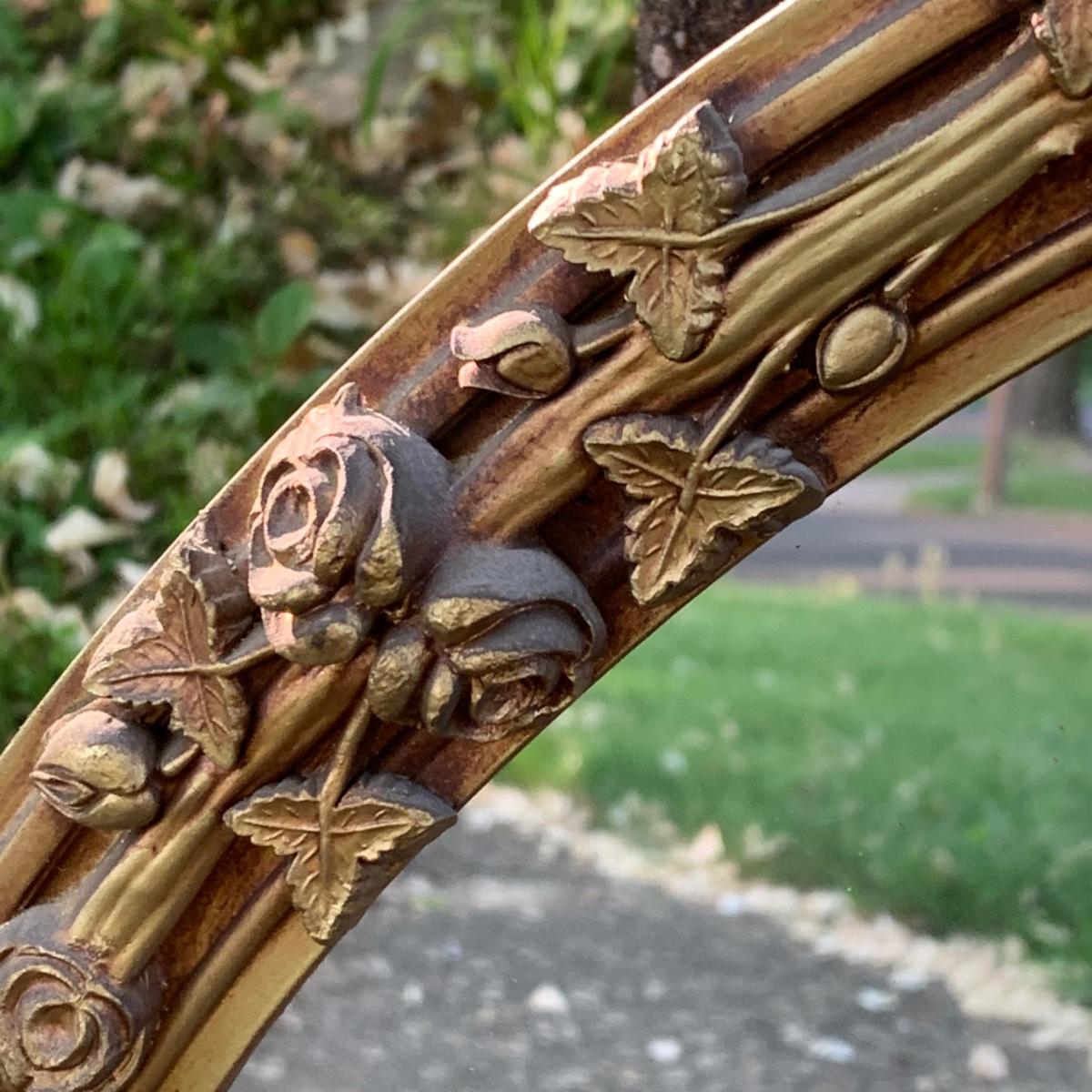 LOT 197R: Vintage Intaglio Round Wall Mirror with Gold Colored Frame with Roses and Bow