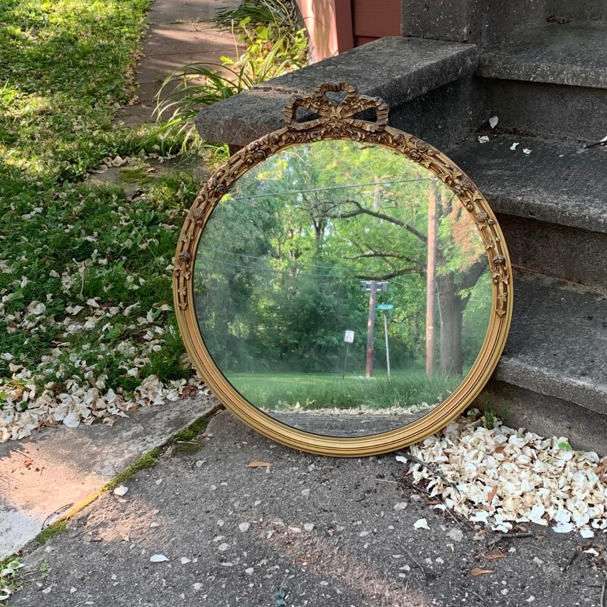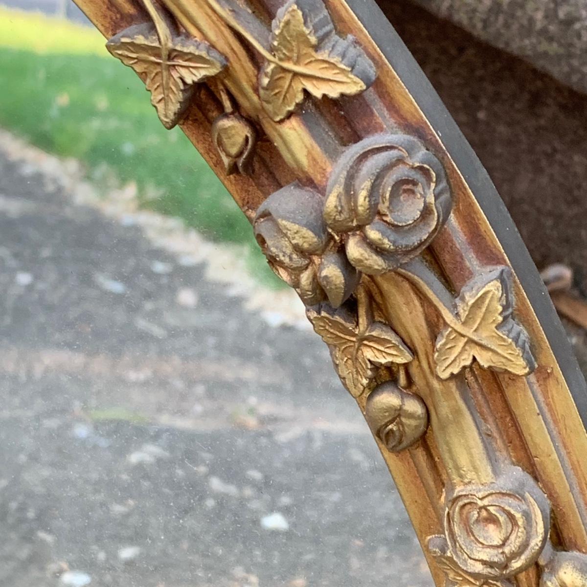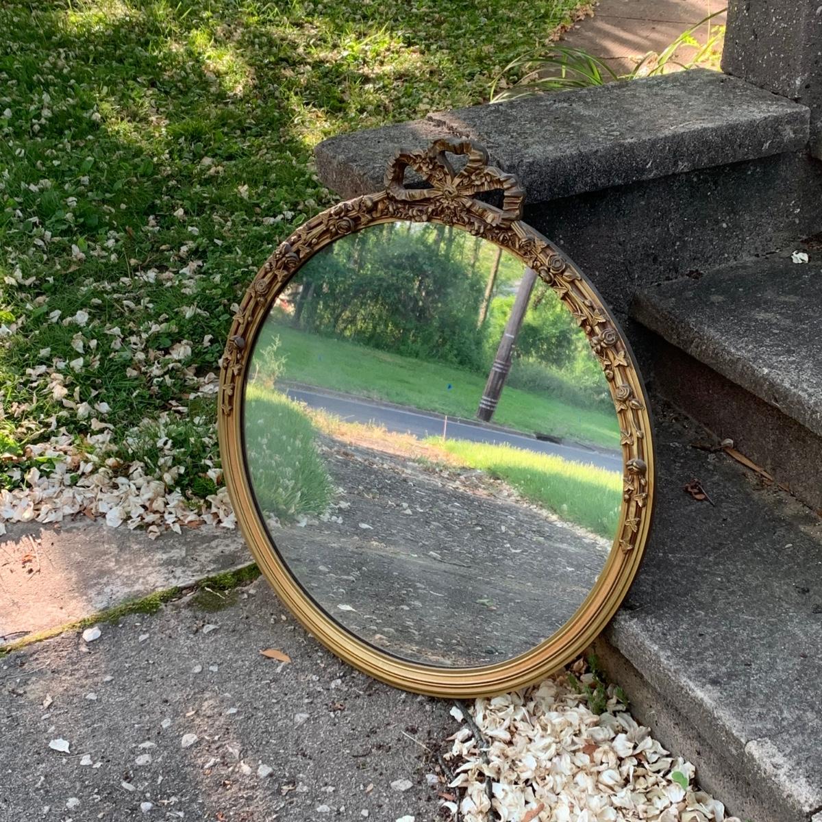 LOT 197R: Vintage Intaglio Round Wall Mirror with Gold Colored Frame with Roses and Bow