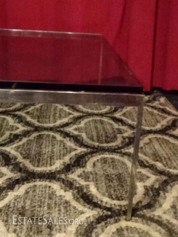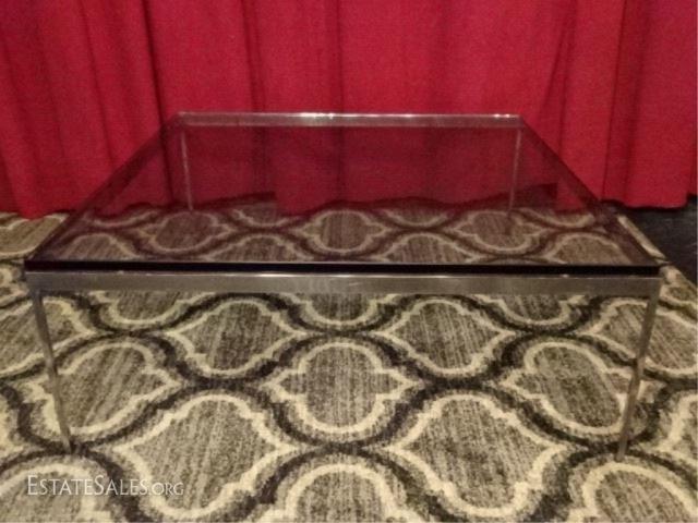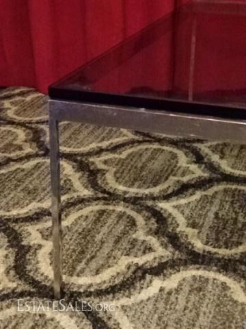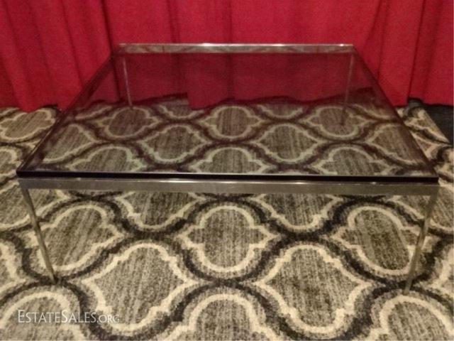 LOT 86A: MID CENTURY CHROME STEEL COFFEE TABLE, FLORENCE KNOLL STYLE, INSET GLASS TOP, UNLABELED, VERY GOOD CONDITION, 40" X 40" X 16", SKU3367.03