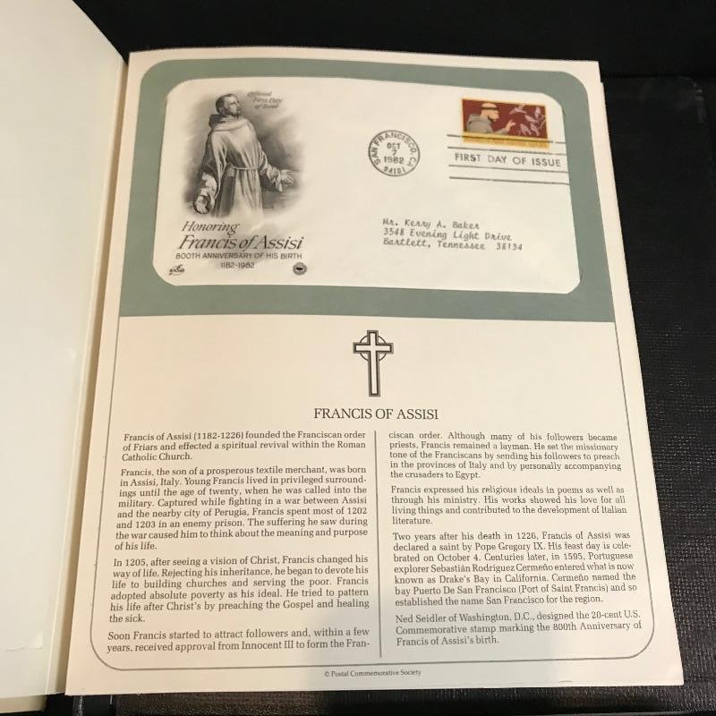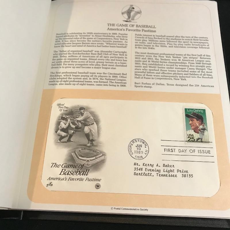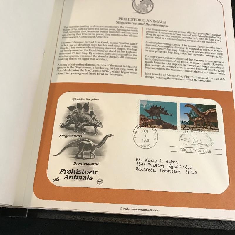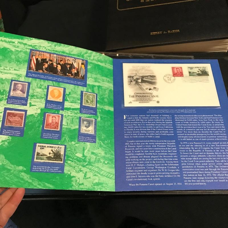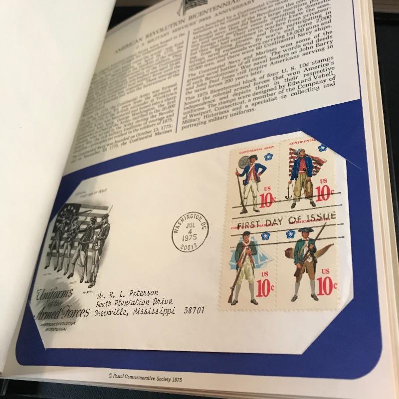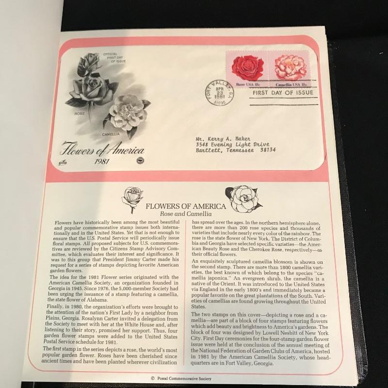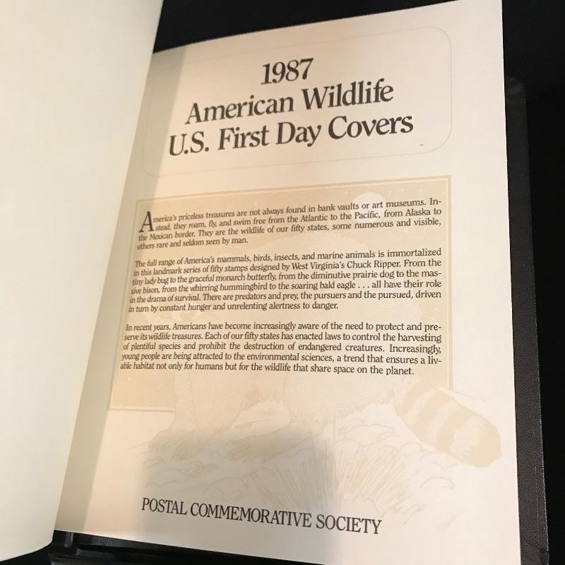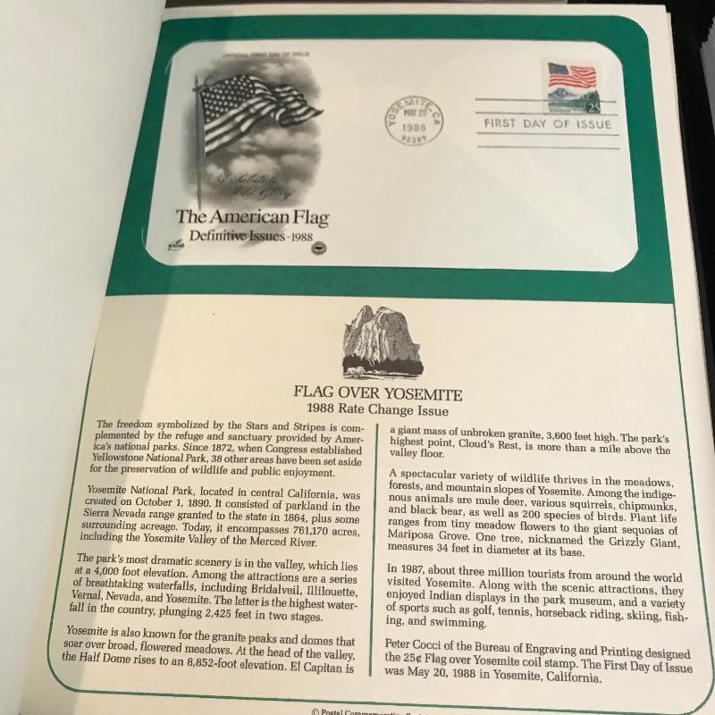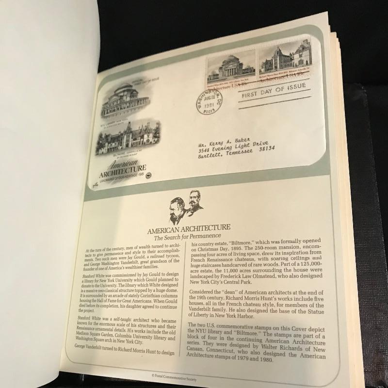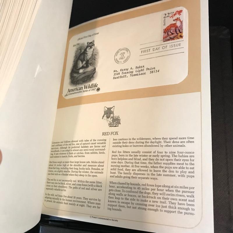 Four matching black binders personalized with special first day covers. Most are collected with full page layout. One binder features George HW Bush and Dan Quayle inaugural 1st day cover collection. Just a few pages are waiting for the stamped, cancelled cachet envelope. Covers include many special US stamps, with just a few international. Genres include presidents, US History, Statehood, Wildlife, Professions and People. The first binder shown in photos appears to be two organized collections from US Presidents (Washington to Reagan) and Wildlife. Most stamps are from 1980s.