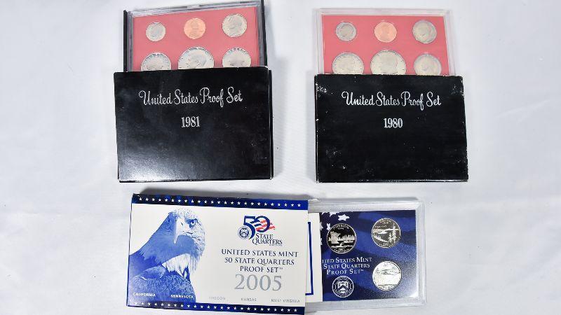 1981 & 1980 Proof Set, and 2005 State Quarters Proof Set