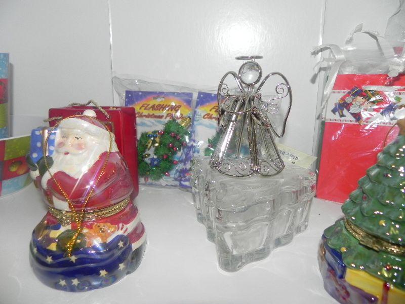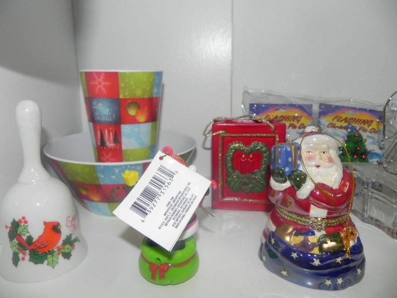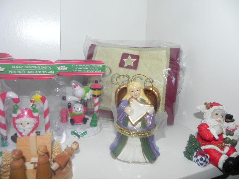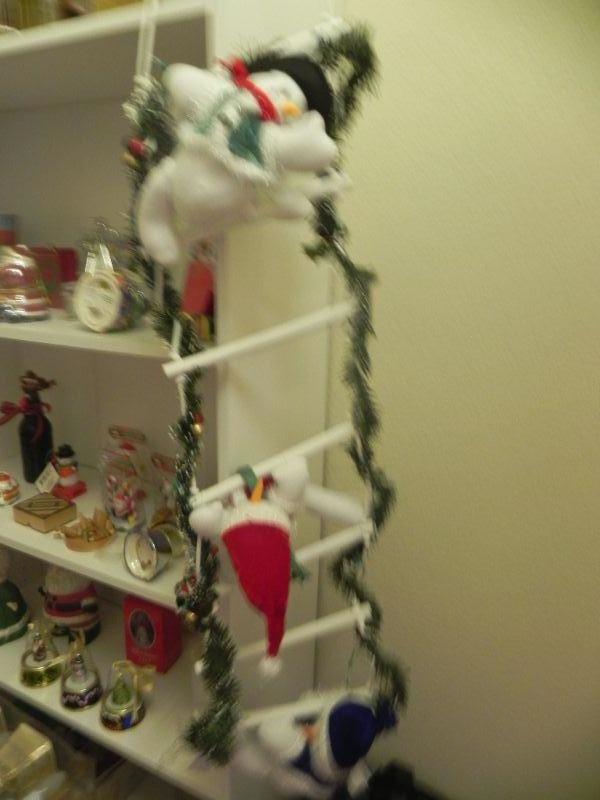 HANGING SNOWMAN ON LADDER, ANGEL MUSIC BOX, TREE ORNAMENTS (SOME NEW) AND MORE