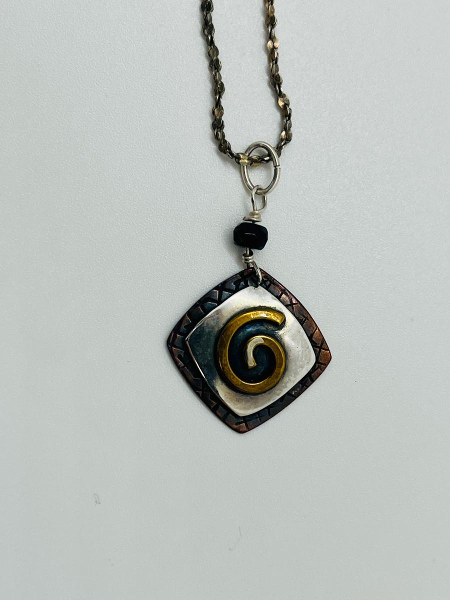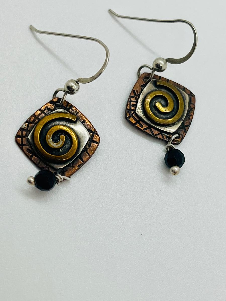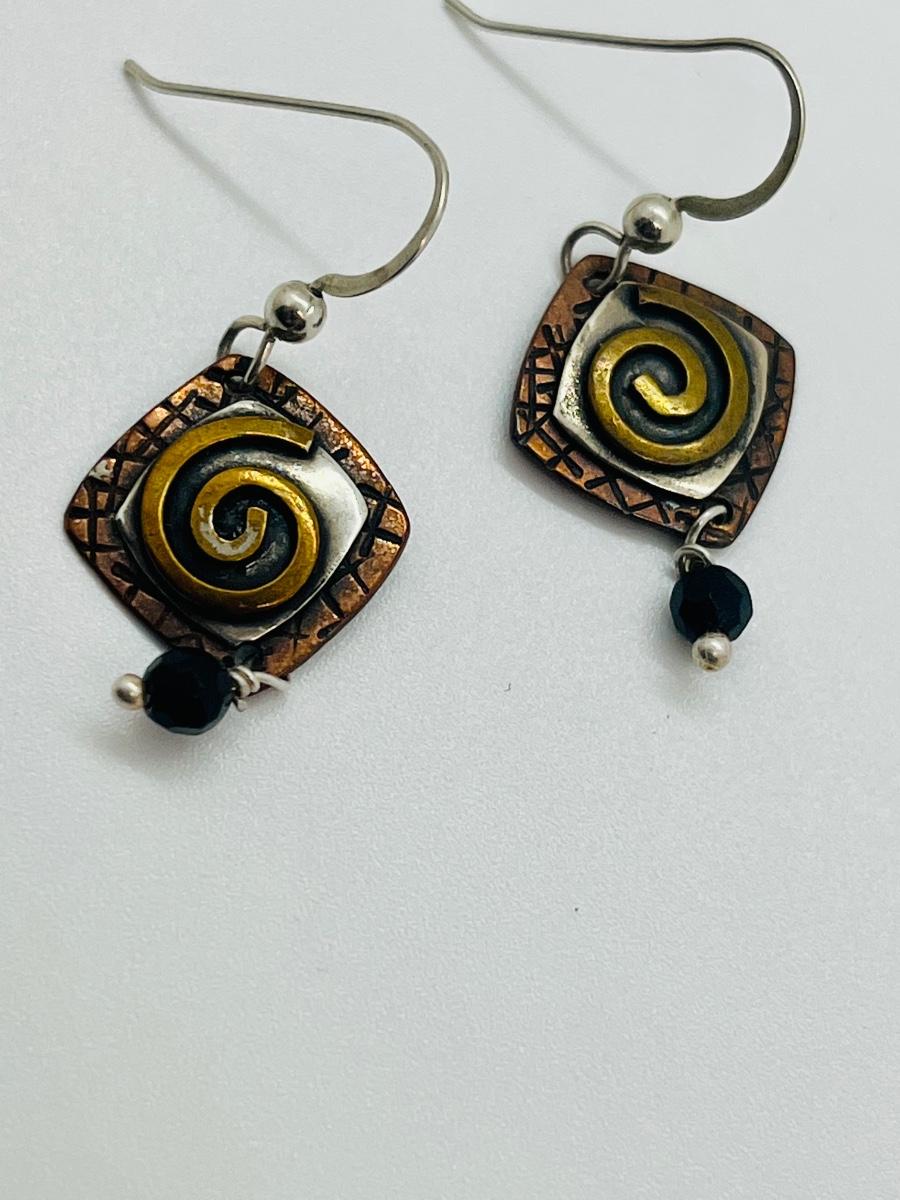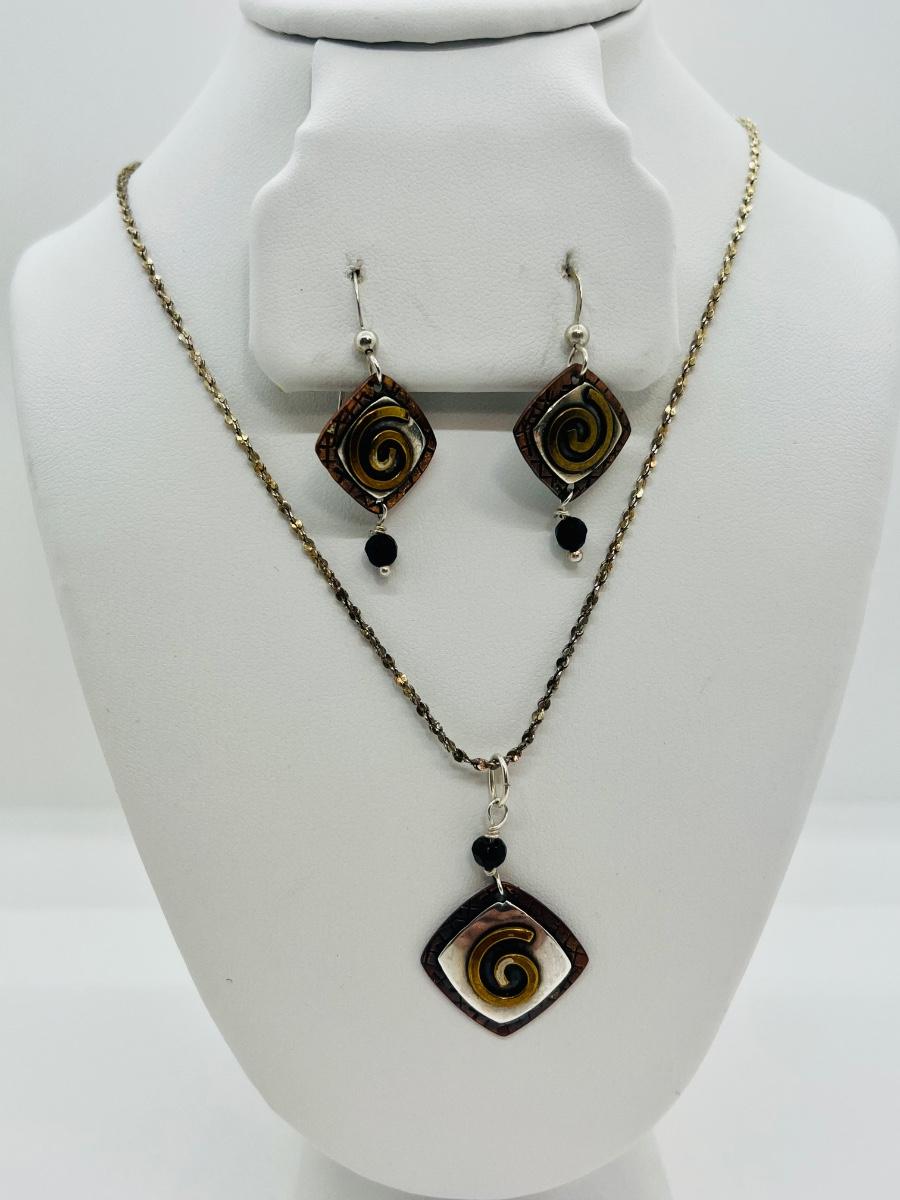 Lot 87: Gardella Sterling, Copper and Brass Pendant and Earring Set