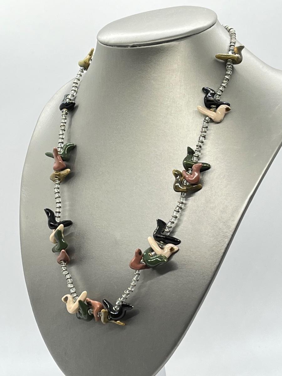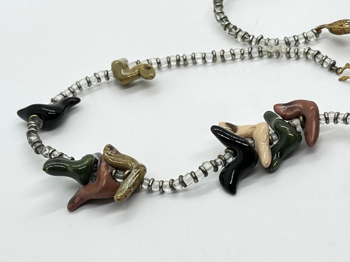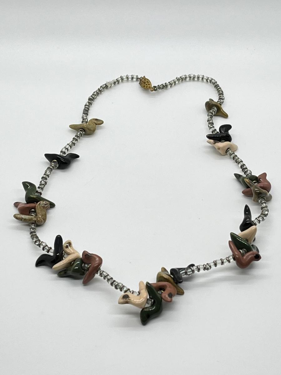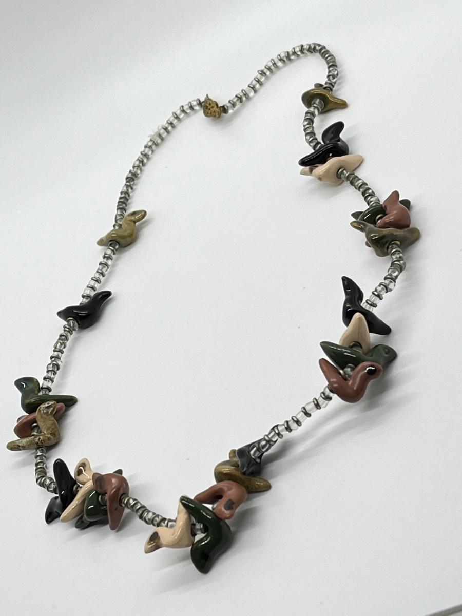 LOT 87: Handcrafted Glazed Ceramic Pottery Beaded Native American Fetish Necklace (22")