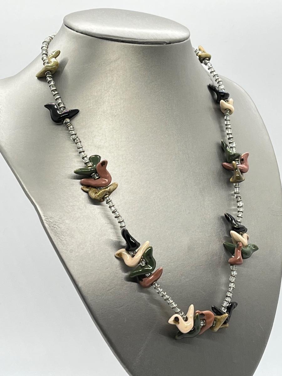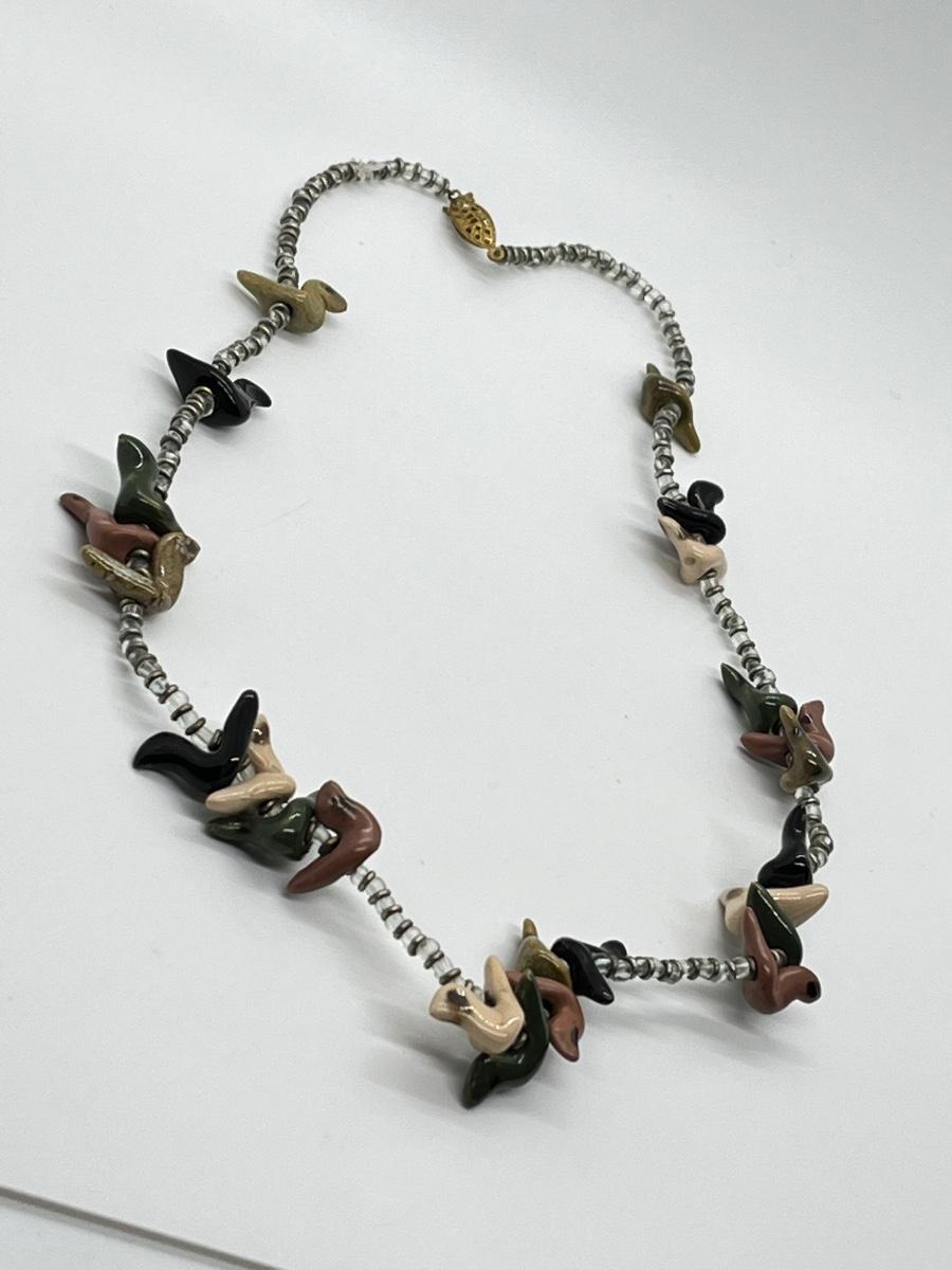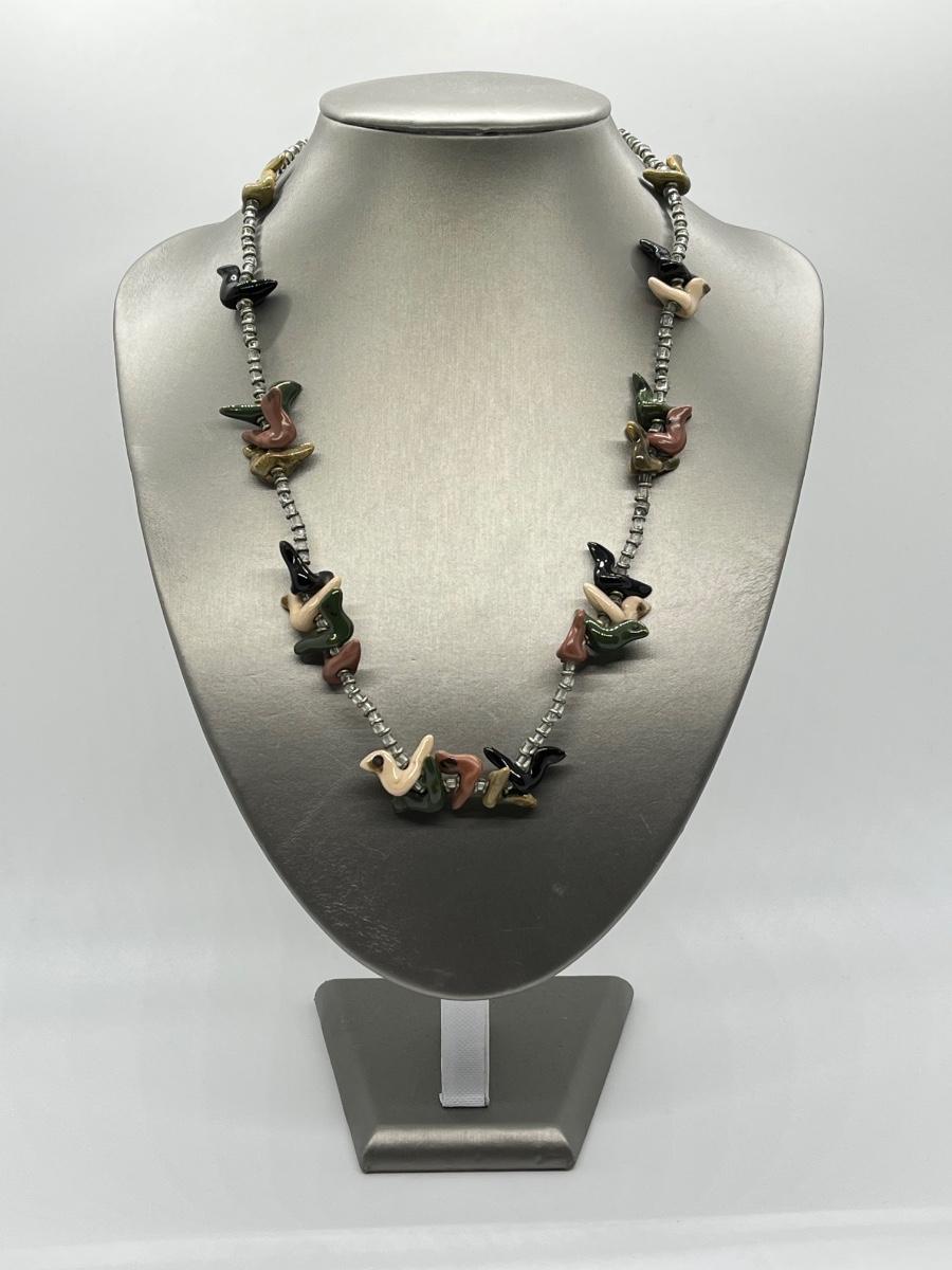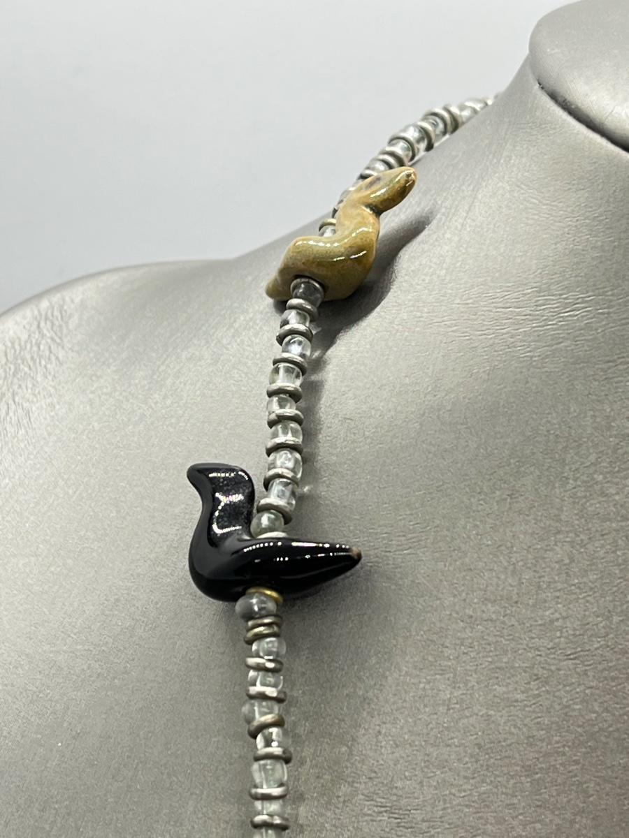 LOT 87: Handcrafted Glazed Ceramic Pottery Beaded Native American Fetish Necklace (22")