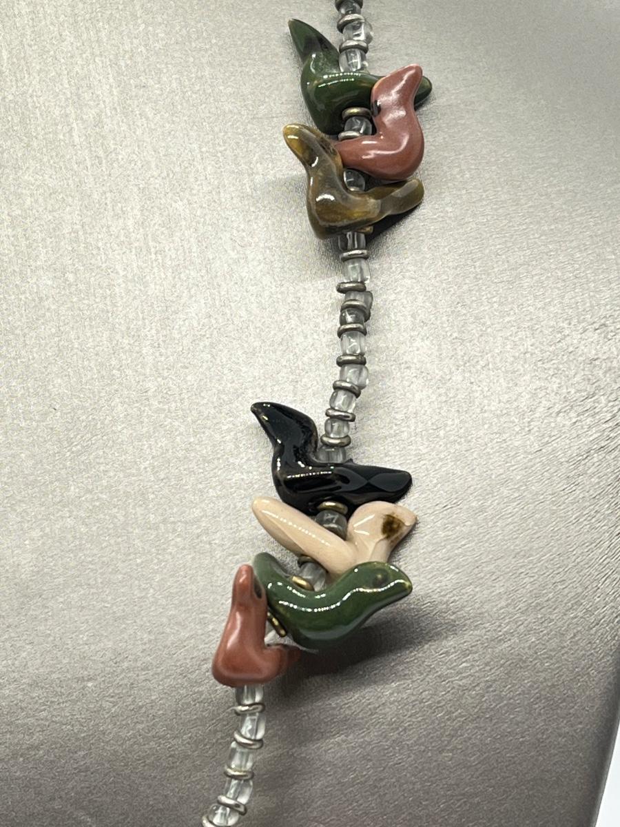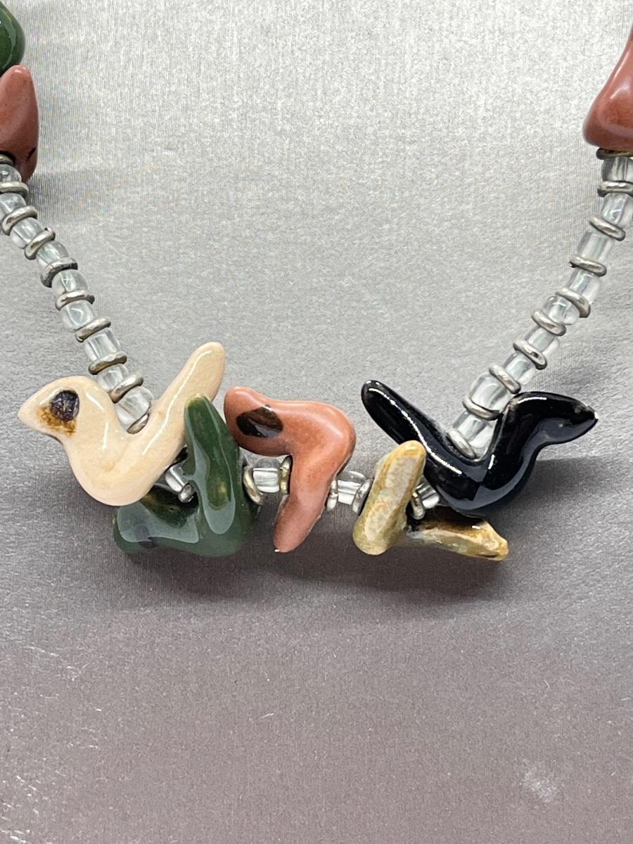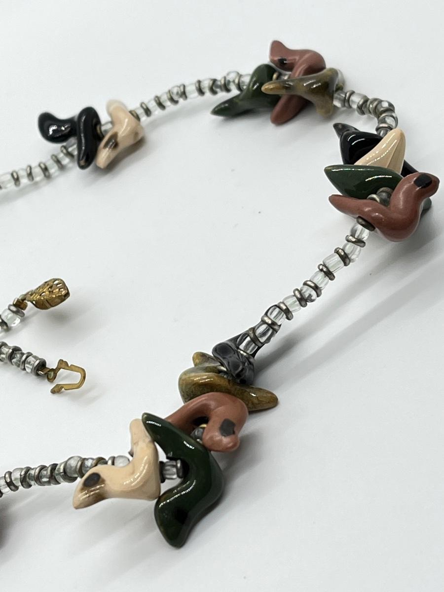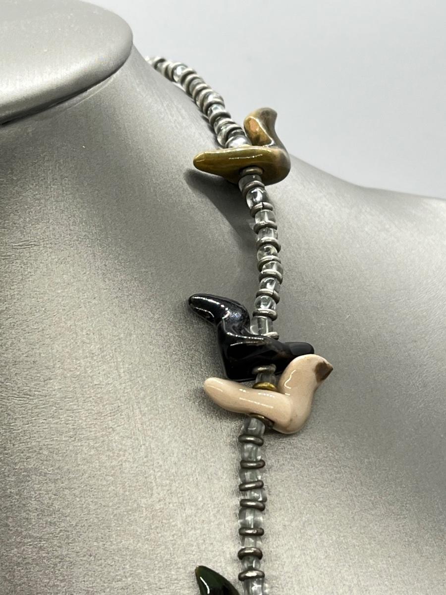 LOT 87: Handcrafted Glazed Ceramic Pottery Beaded Native American Fetish Necklace (22")