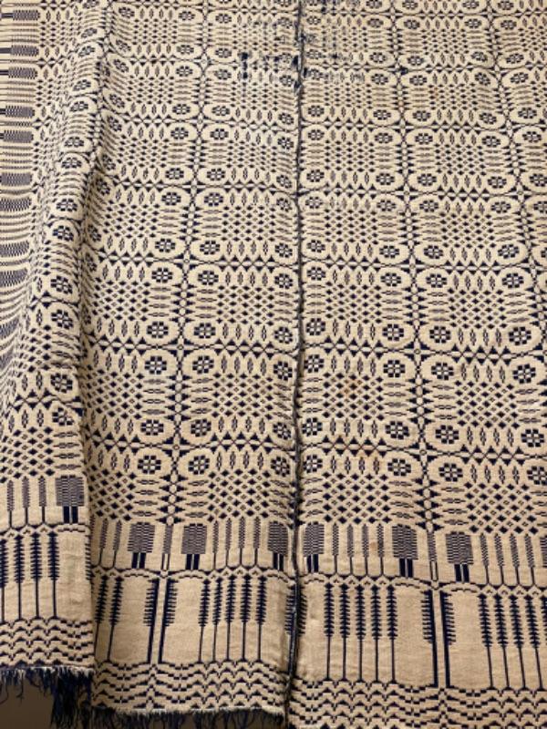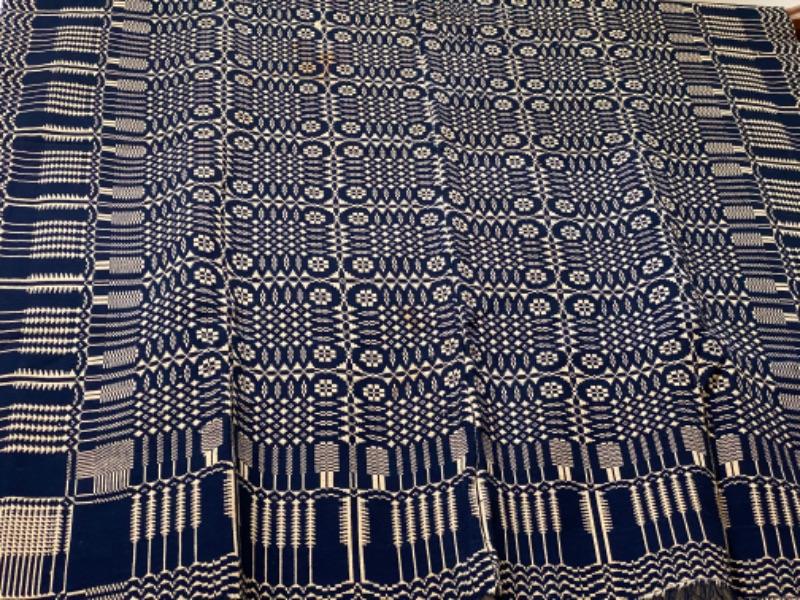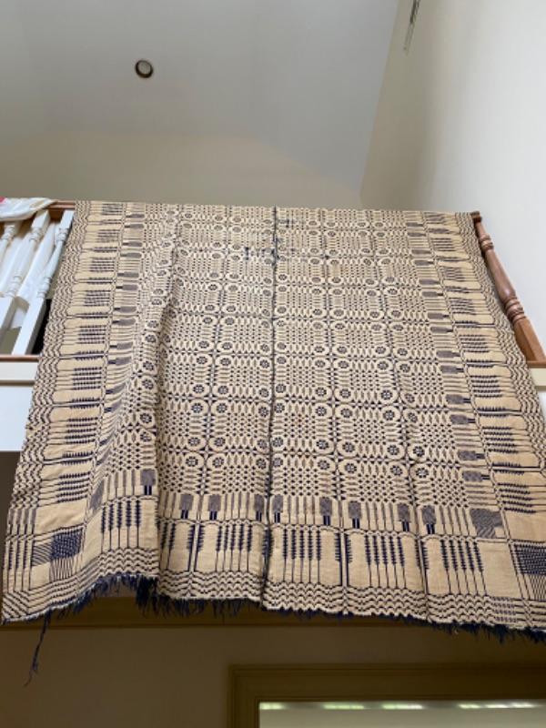Beautiful handwoven wool coverlet from 1800’s some staining