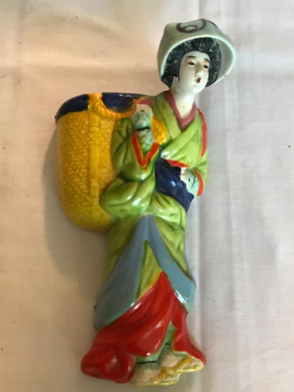 Antique Japanese wall pocket measures 8” tall and 4-1/2” wide