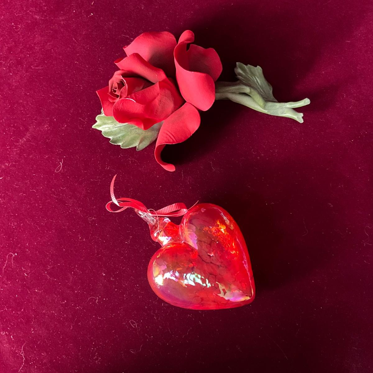 1 ) Red Hand Blown Heart Shaped Bottle
