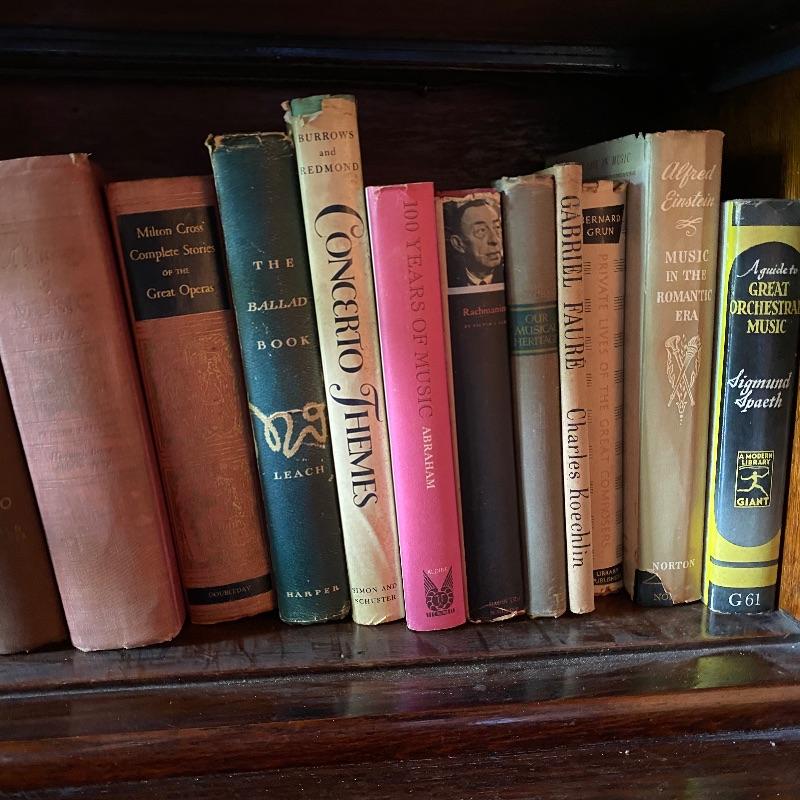Excellent collection of antique books about music and composers. Some biographies and sets included. Learn about the lives of some famous names like Mozart and Bach. See photos for book titles. Bookcase is not included. You will find it in Lot 88. Shipping available.