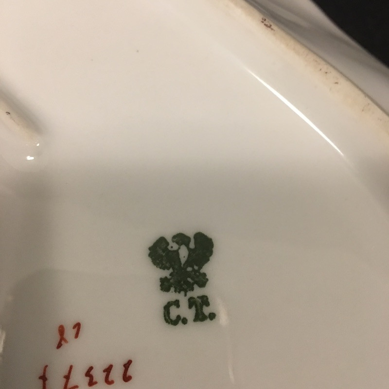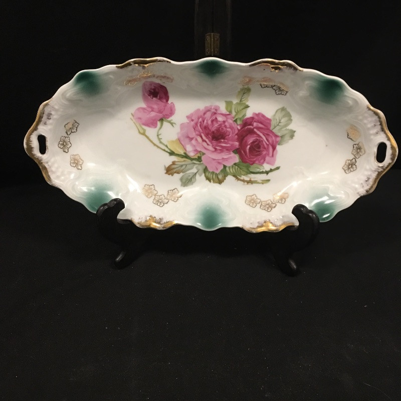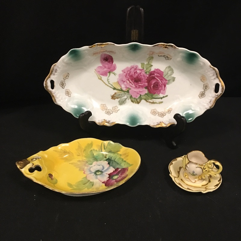 Floral and stunning, this assortment of china includes platter, dish and small cup and saucer. Platter measures 6” x 13” x 1.75”.