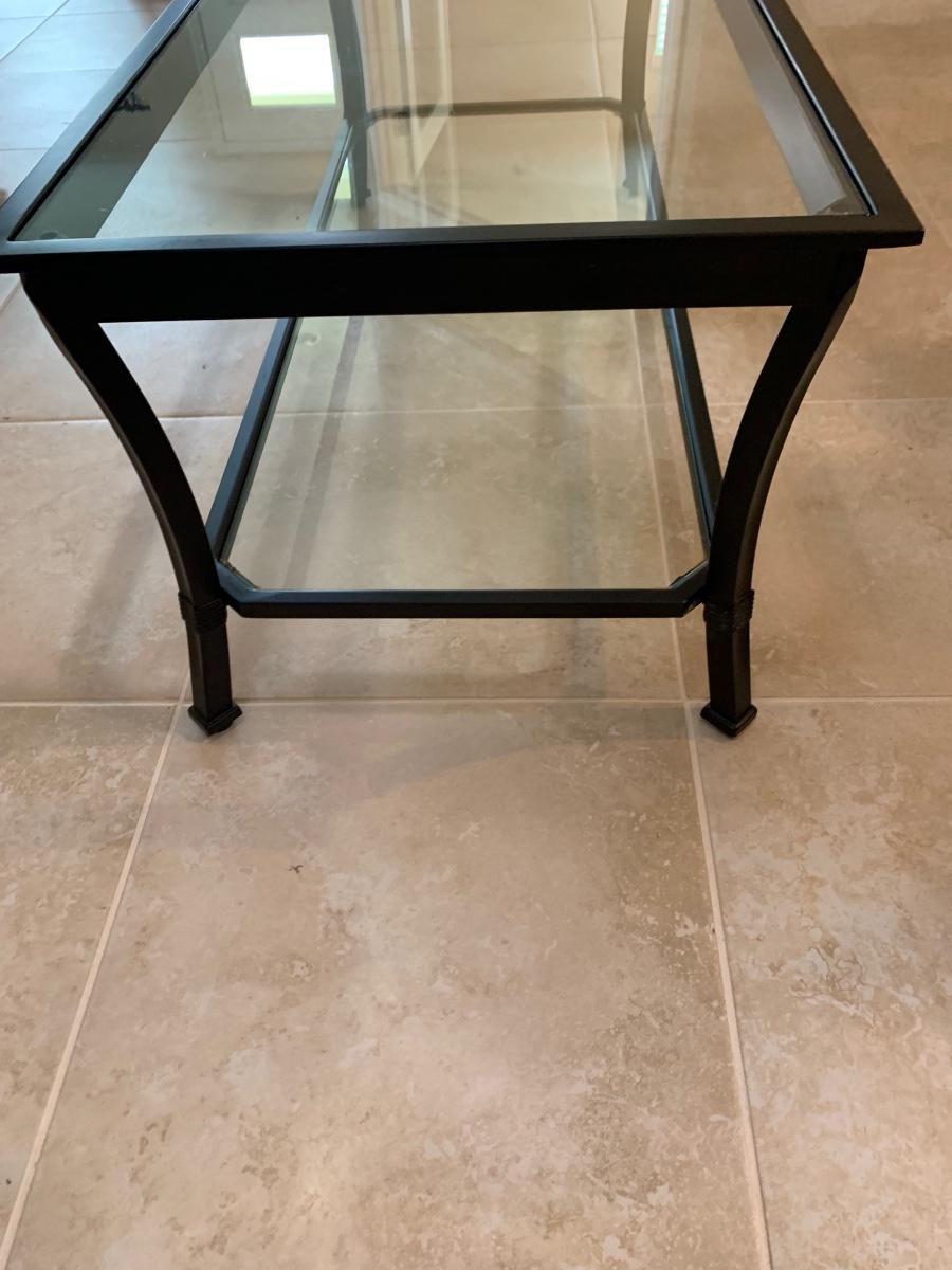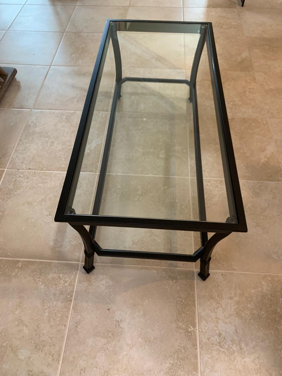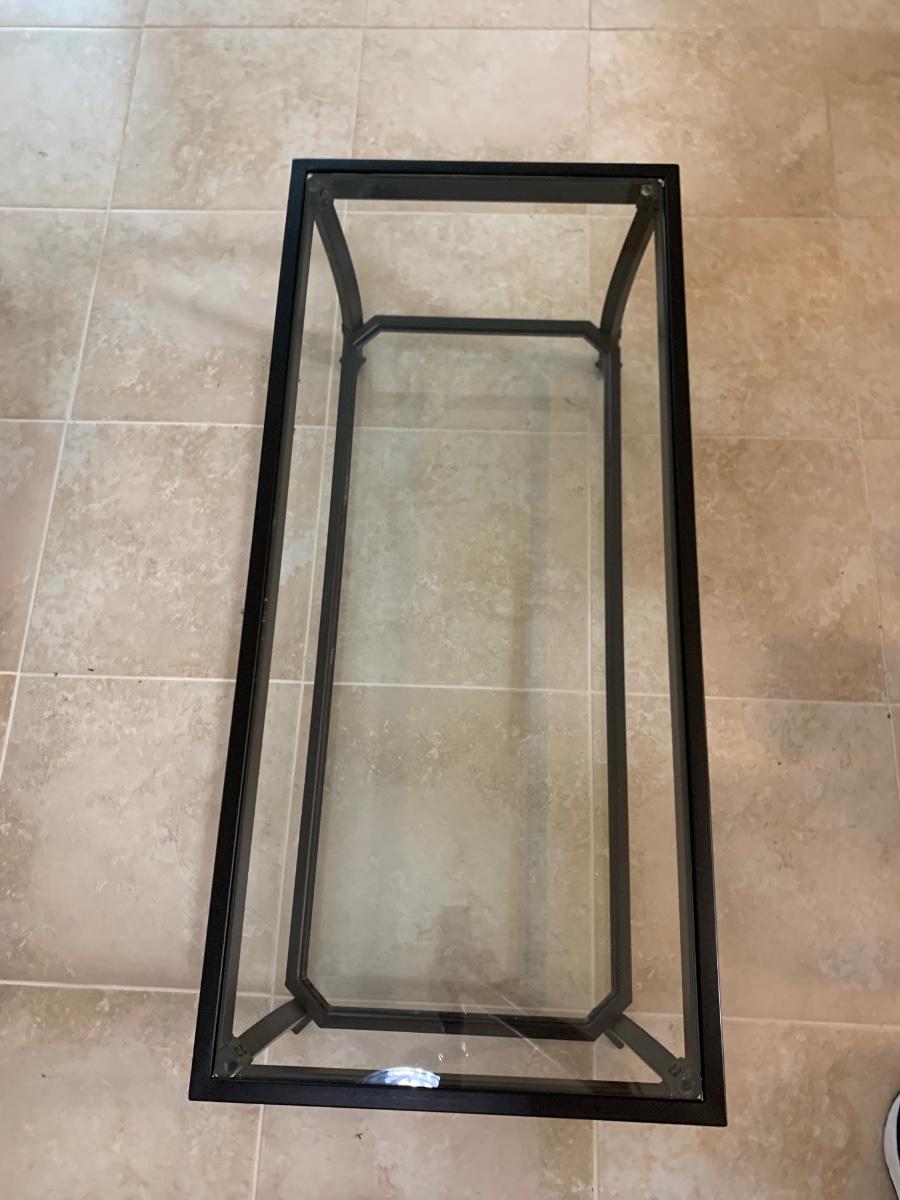 Black metal and glass 44" X 20" X 17" high. very good condition