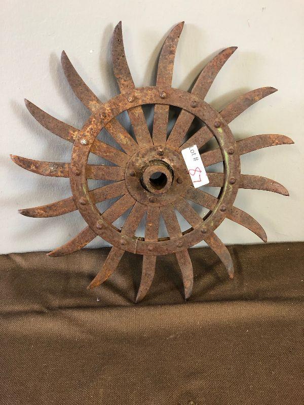 Lot #87  Cultivator Wheel #2 Antique John Deer