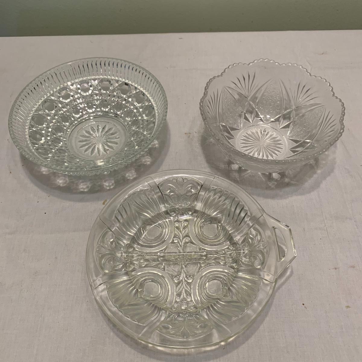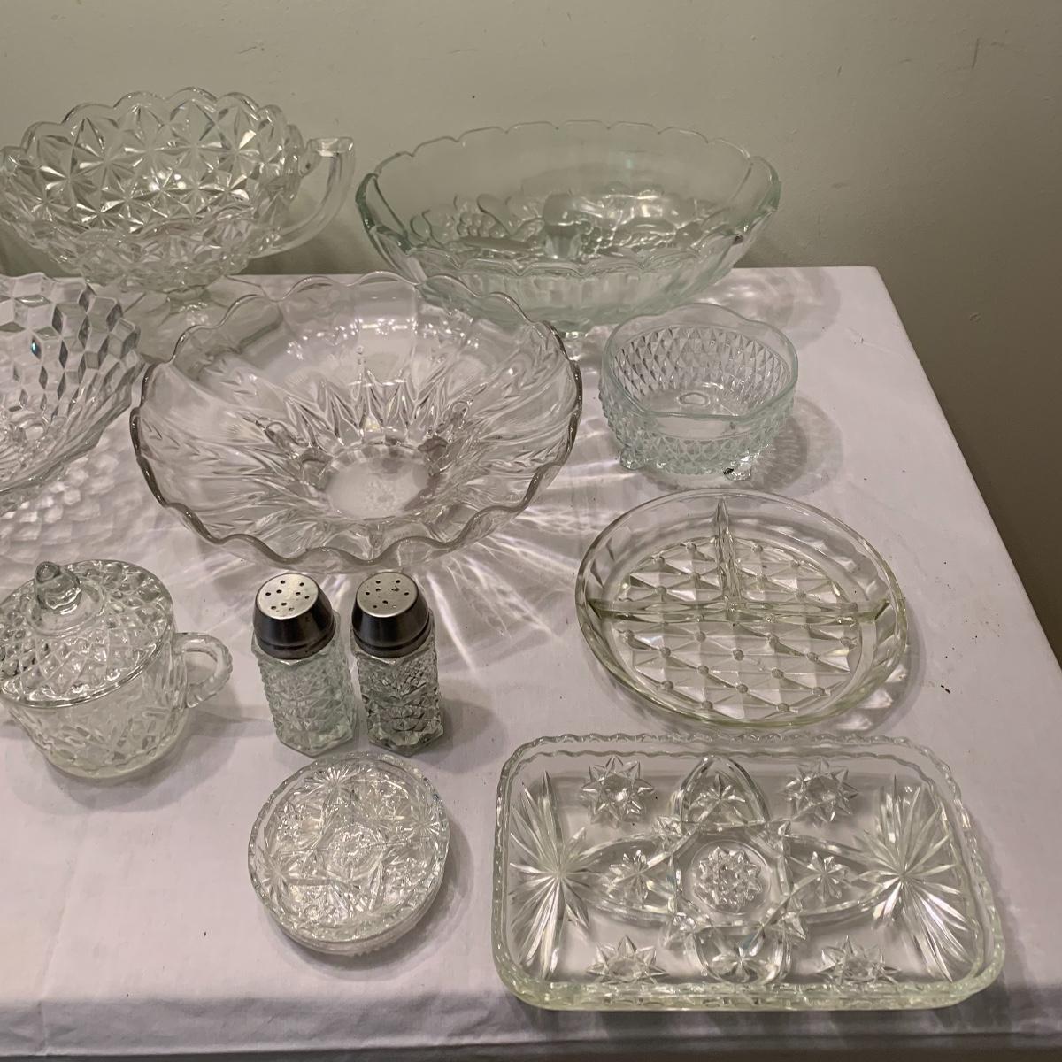 If you need beautiful glass serving bowls, you’re in the right place. This lot includes numerous glass bowls, small serving bowls, ash trays, and more. All items are in good condition. See pics to determine lot content. Local pickup only.