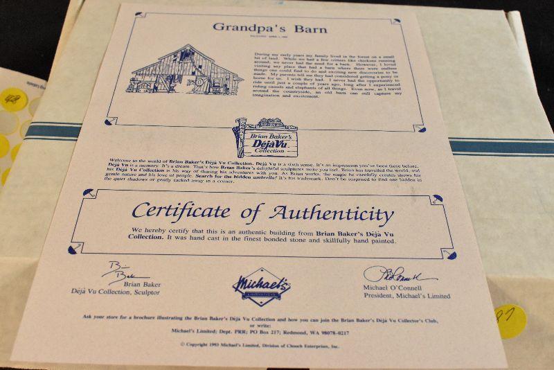 Vintage Brian Baker's Grandpa's Barn. In original box, has COA, signed and dated. 7.5x9