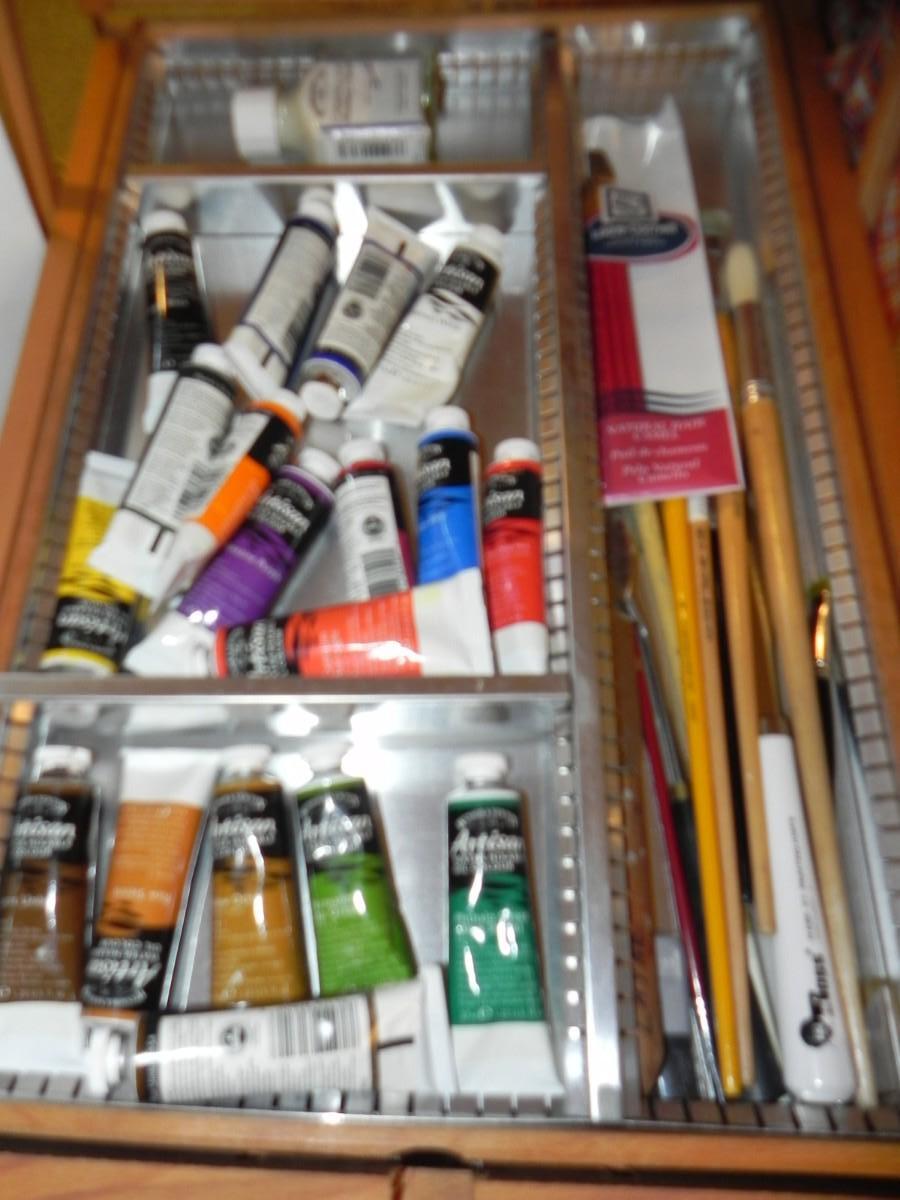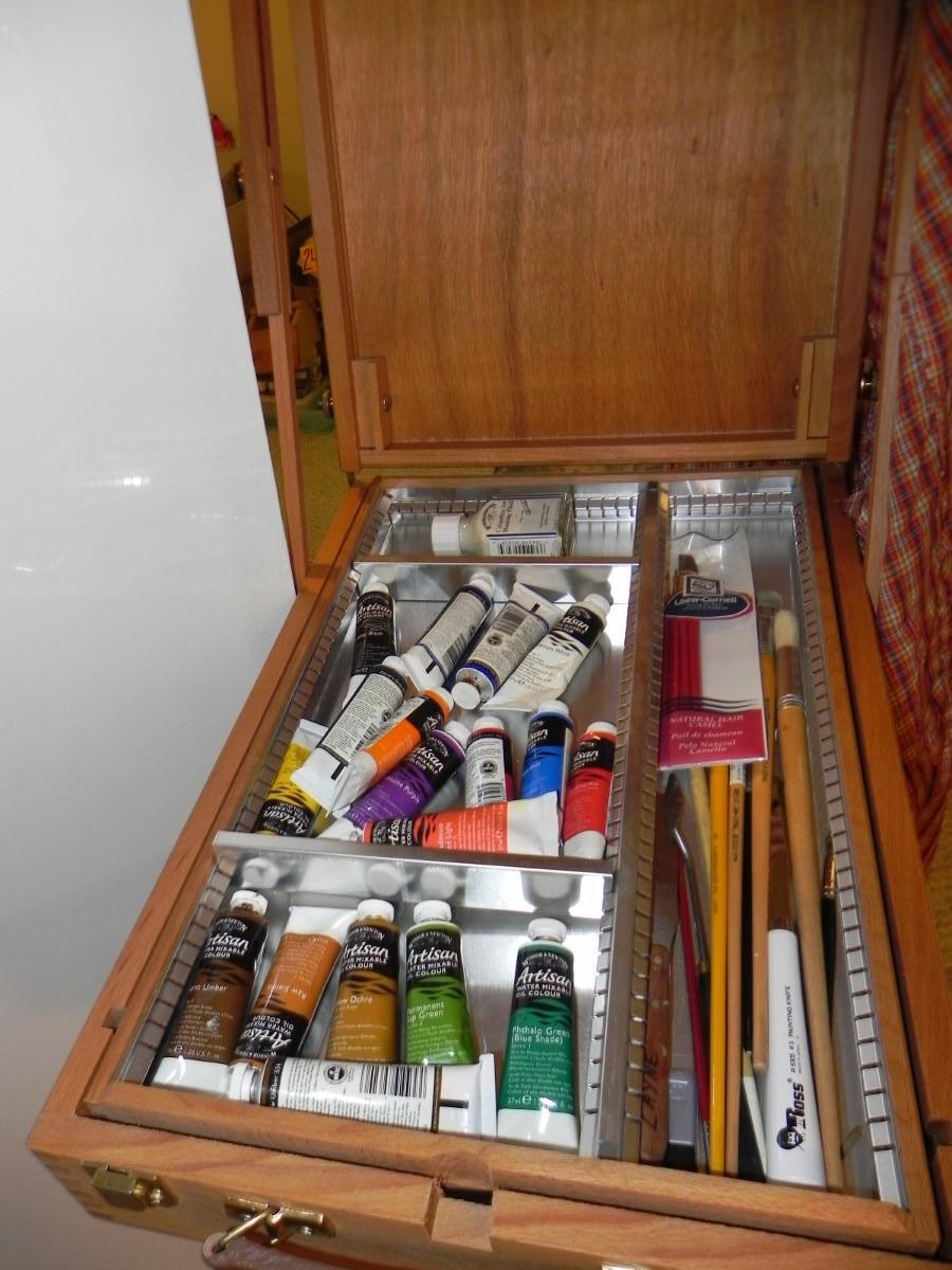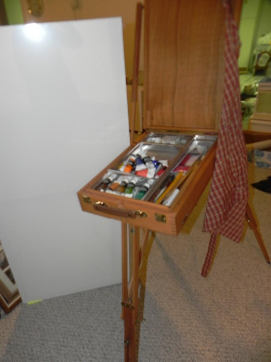 CANVAS MEASURES 48X24 WOODEN EASEL IS FULL OF PAINTING SUPPLIES