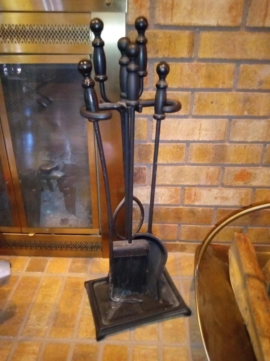 LOT 87 FIREPLACE TOOLS AND METAL LOG HOLDER
